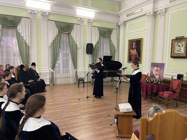 В ходе лекции-концерта, зрителями которой стали митрополит Ярославский и Ростовский Вадим и прихожане разных храмов города Ярославля, прозвучали романс «Сон» в исполнении ученицы 2 курса Дарьи Чайко и великолепный этюд-картина соль минор, мастерски исполненный ученицей 1 курса Ириной Смирновой. Вечер украсили хоровые сочинения С. В. Рахманинова «Ангел» и «Богородице Дево, радуйся», исполненные хором учащихся Регентской школы под управлением дирижера Марии Михайловны Шуваловой.