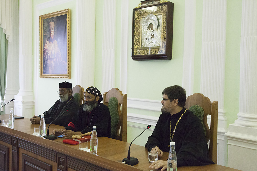 После концерта митрополит Абрахам Мар Стефанос и священник Ашвин Фернандис выступили перед преподавателями и воспитанниками семинарии. Владыка рассказал о жизни христиан в Индии и вместе с отцом Ашвином ответил на многочисленные вопросы семинаристов и преподавателей о церковно-приходской жизни в Индии и воспитании будущих пастырей.