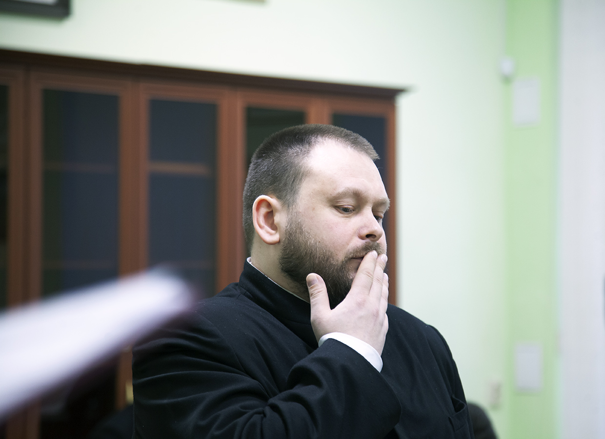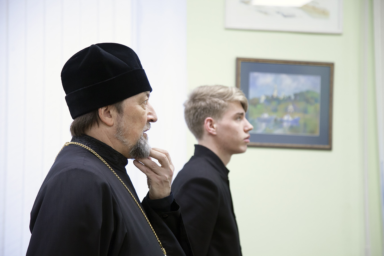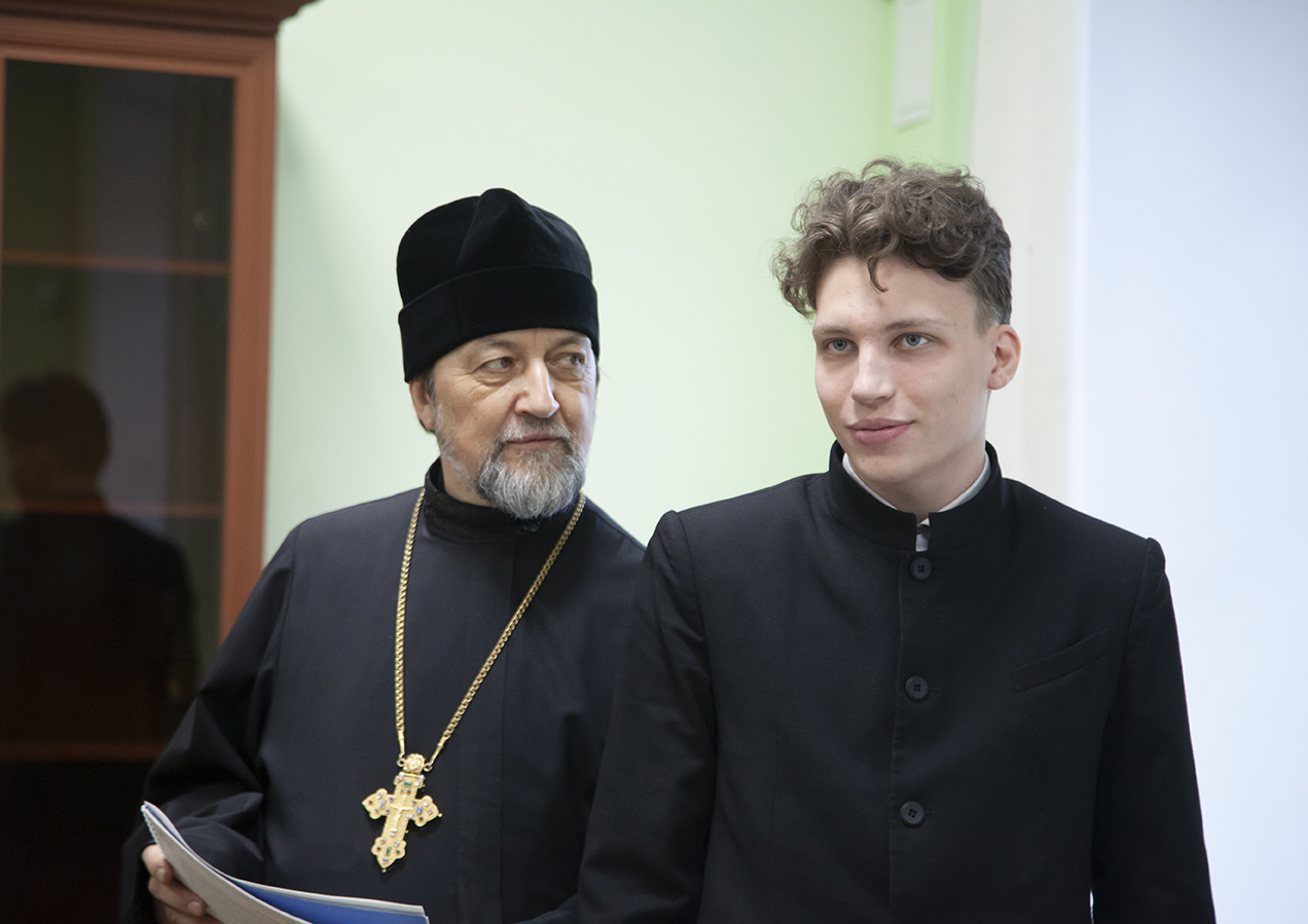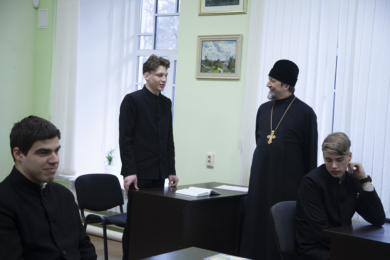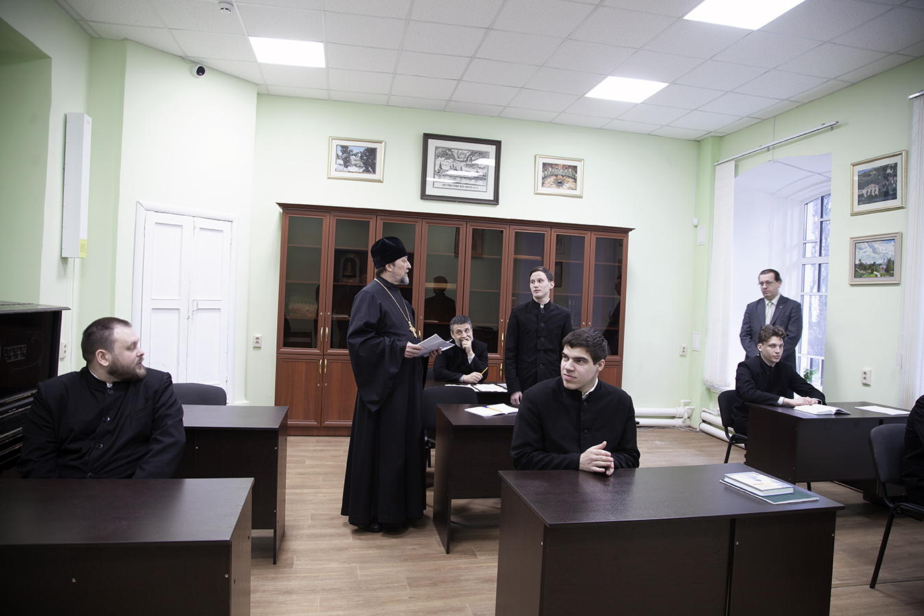 Протоиерей Максим Козлов проверил знания студентов семинарии. Во время проверки учащиеся первых трех курсов отвечали на вопросы отца Максима по пройденным дисциплинам.