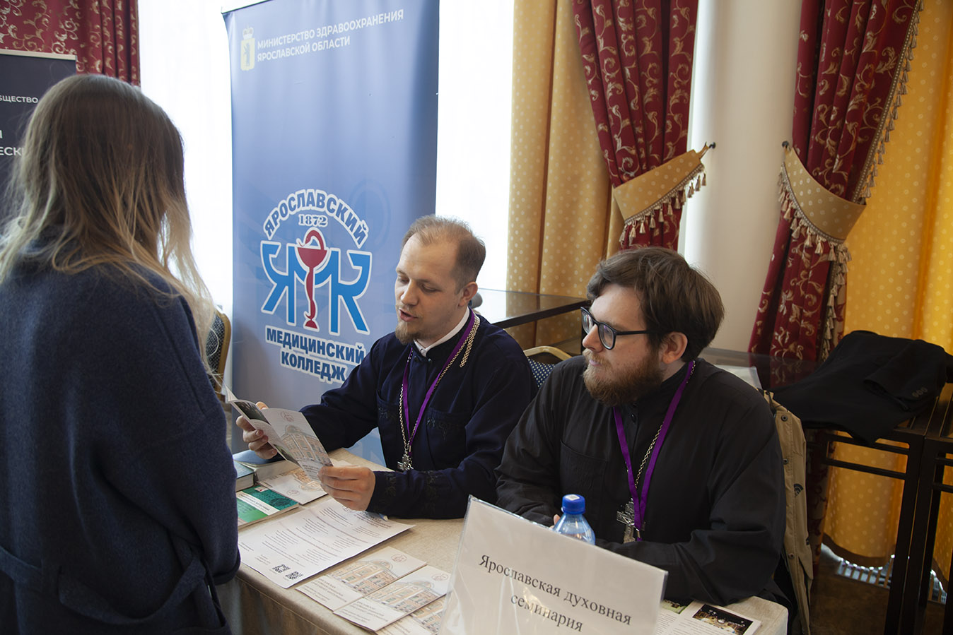 На выставке у всех участников и будущих абитуриентов была уникальная возможность пообщаться с представителями Ярославской духовной семинарии, узнать о преподаваемых в духовной школе дисциплинах, о направлениях подготовки.