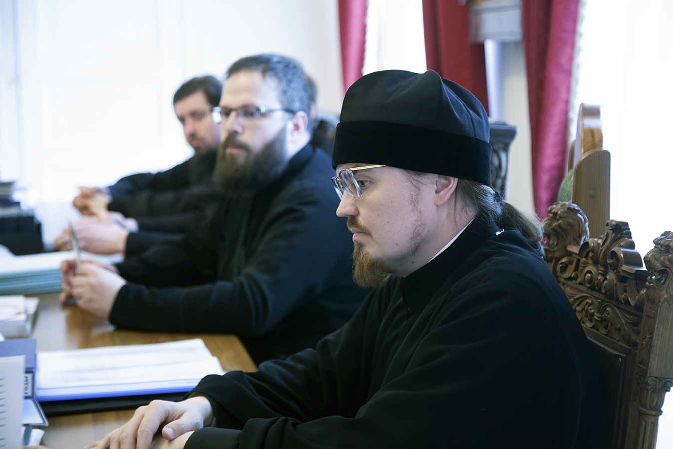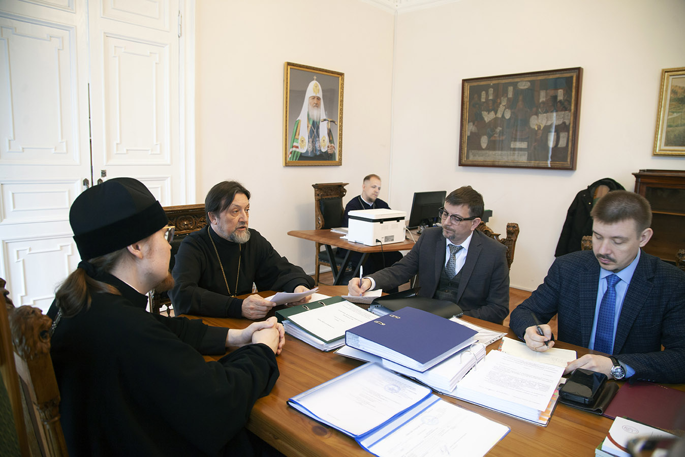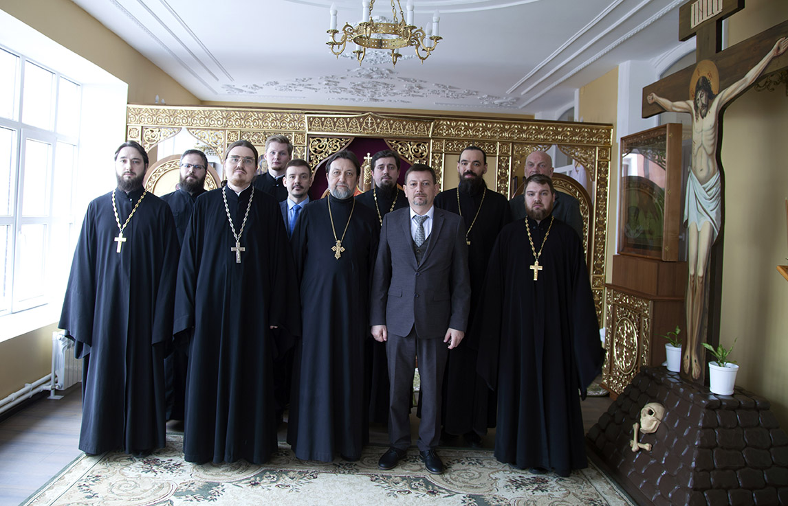 Затем состоялась встреча протоиерея Максима Козлова и членов комиссии с ректором семинарии иеромонахом Платоном (Кудласевичем), сопредседателем Попечительского совета духовной школы, вице-губернатором области В. А. Горбуновым, проректорами, руководителем учебно-методического отдела и сотрудниками администрации. Отец Максим озвучил вынесенные комиссией предписания, направленные на совершенствование образовательного процесса.