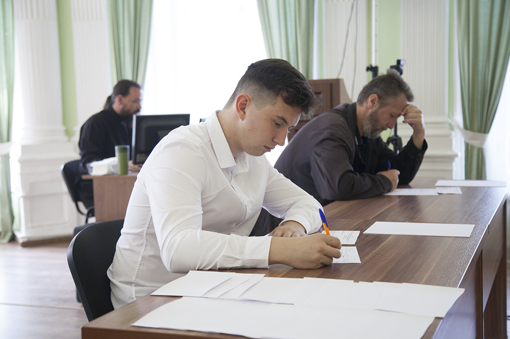 В первый день абитуриенты сдавали комплексный экзамен, включающий в себя такие дисциплины, как Библейская история, основы веры, богослужебный устав, а также чтение на церковнославянском языке. В этот же день поступающие сдали экзамен по Истории Отечества.