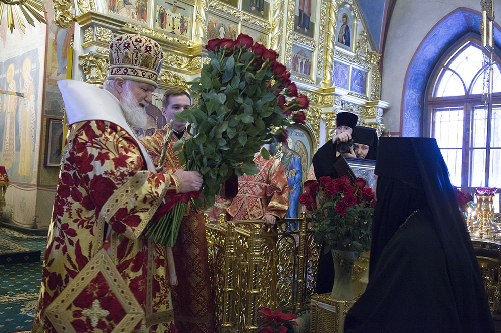 В праздничный день владыка митрополит обратился с поздравлением к игумении Варваре: