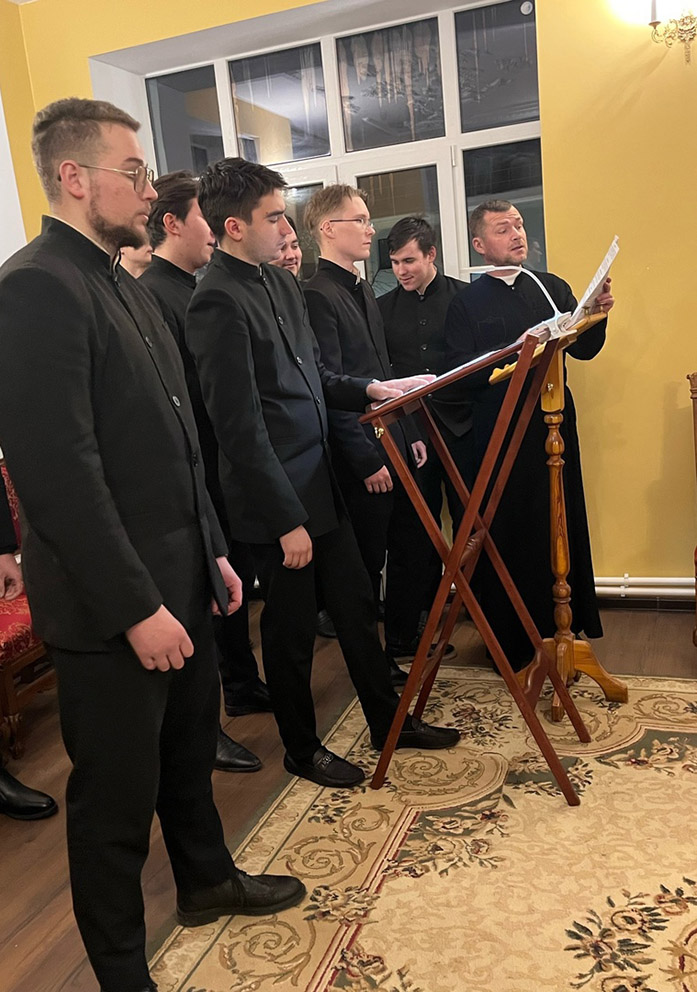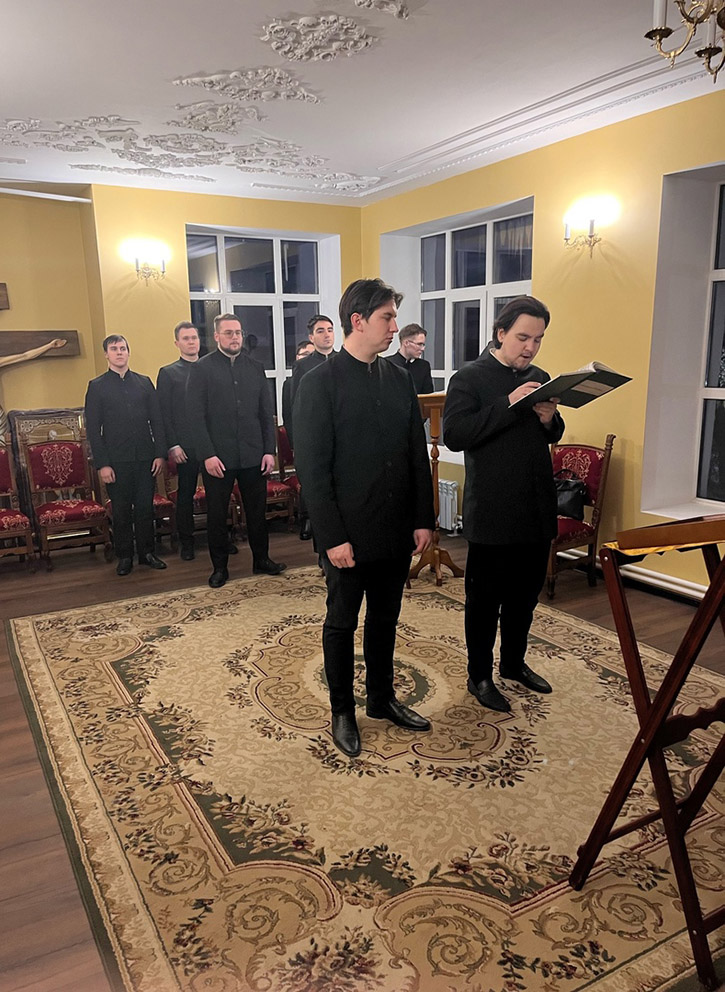 Сегодня в храме проректор по воспитательной работе иерей Димитрий Пчелкин совершил вечернее богослужение. Песнопения исполнил хор семинаристов под управлением Григория Воскобойникова.