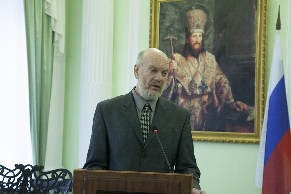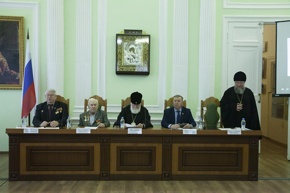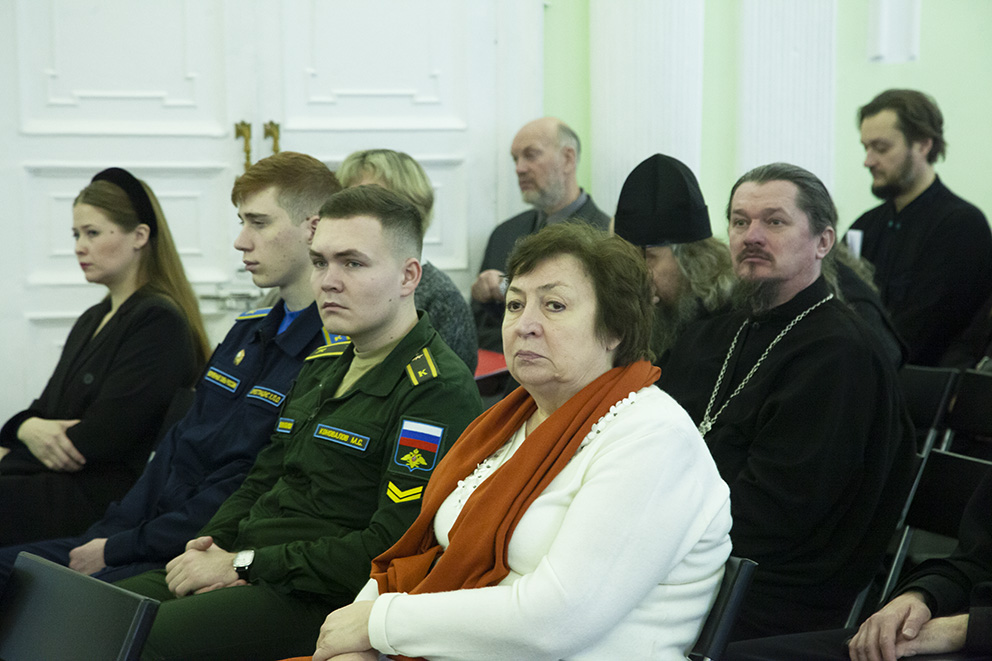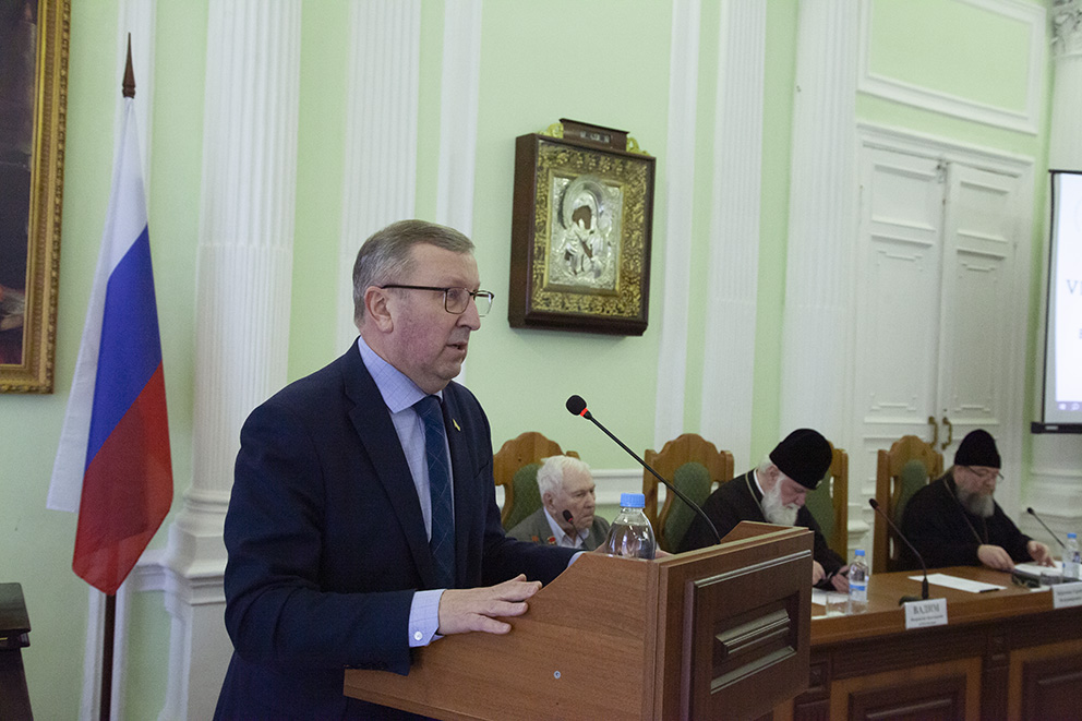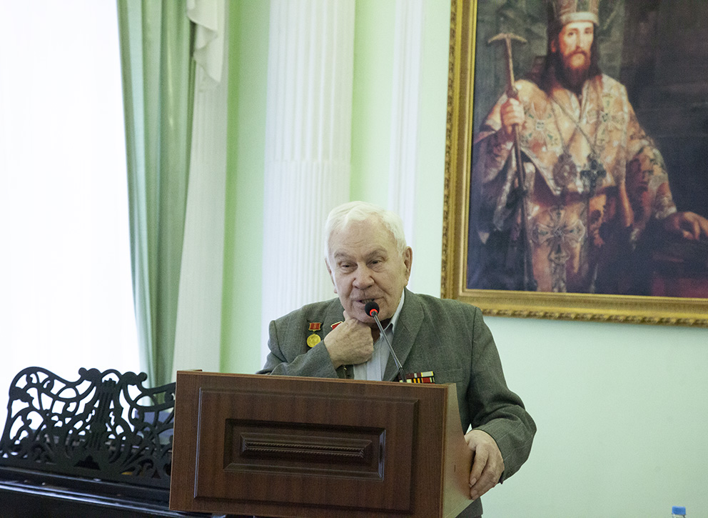 Затем пленарное заседание продолжилось докладами. С докладом «Русская Православная Церковь в годы Великой Отечественной войны» выступил проректор по научной работе Ярославской духовной семинарии, доктор культурологии, профессор А. Г. Шустров. С докладом «Проза ВОВ и СВО в контексте духовной традиции России» – доктор филологических наук, профессор факультета филологии и коммуникации ЯрГУ им. П.Г. Демидова Е. А. Федорова. С докладом «Духовная связь времён и поколений» – представители Ярославского высшего военного училища противовоздушной обороны имени маршала Советского Союза Л. А. Говорова Руслан Фролов и Кирилл Смирнов.