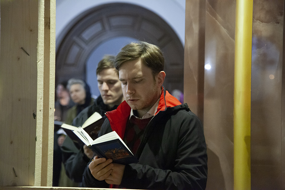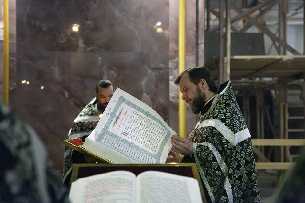 Последование 12-ти Евангелий – чтение двенадцати отрывков из Евангелия, посвященных Страданиям Христа (Прощальная беседа Христа с учениками, скорбное моление в Гефсиманском саду, предательство Иуды и предание в руки воинов, суд синедриона, разговор с Пилатом и издевательства).