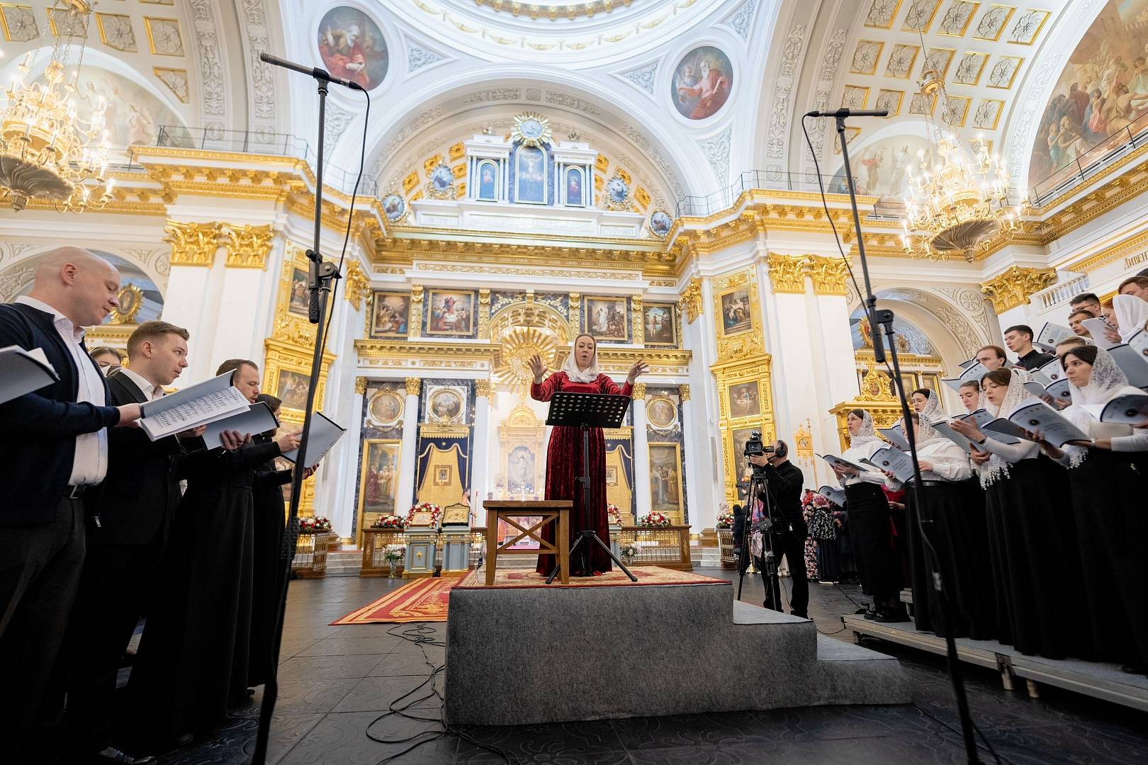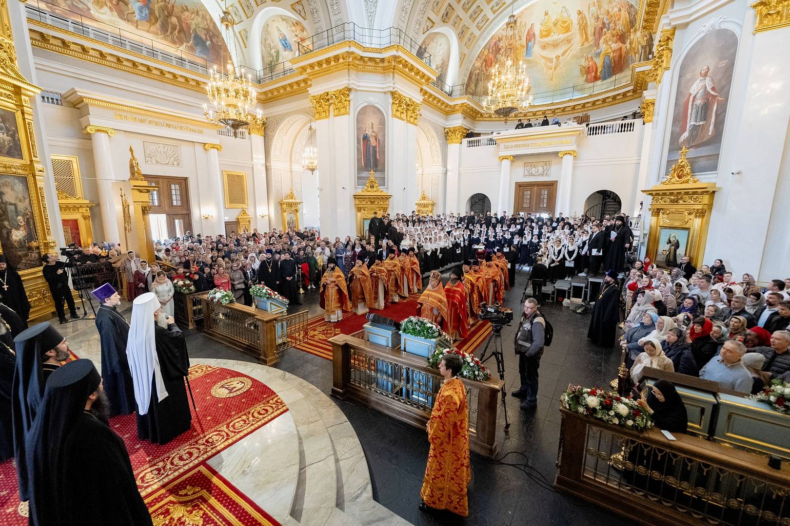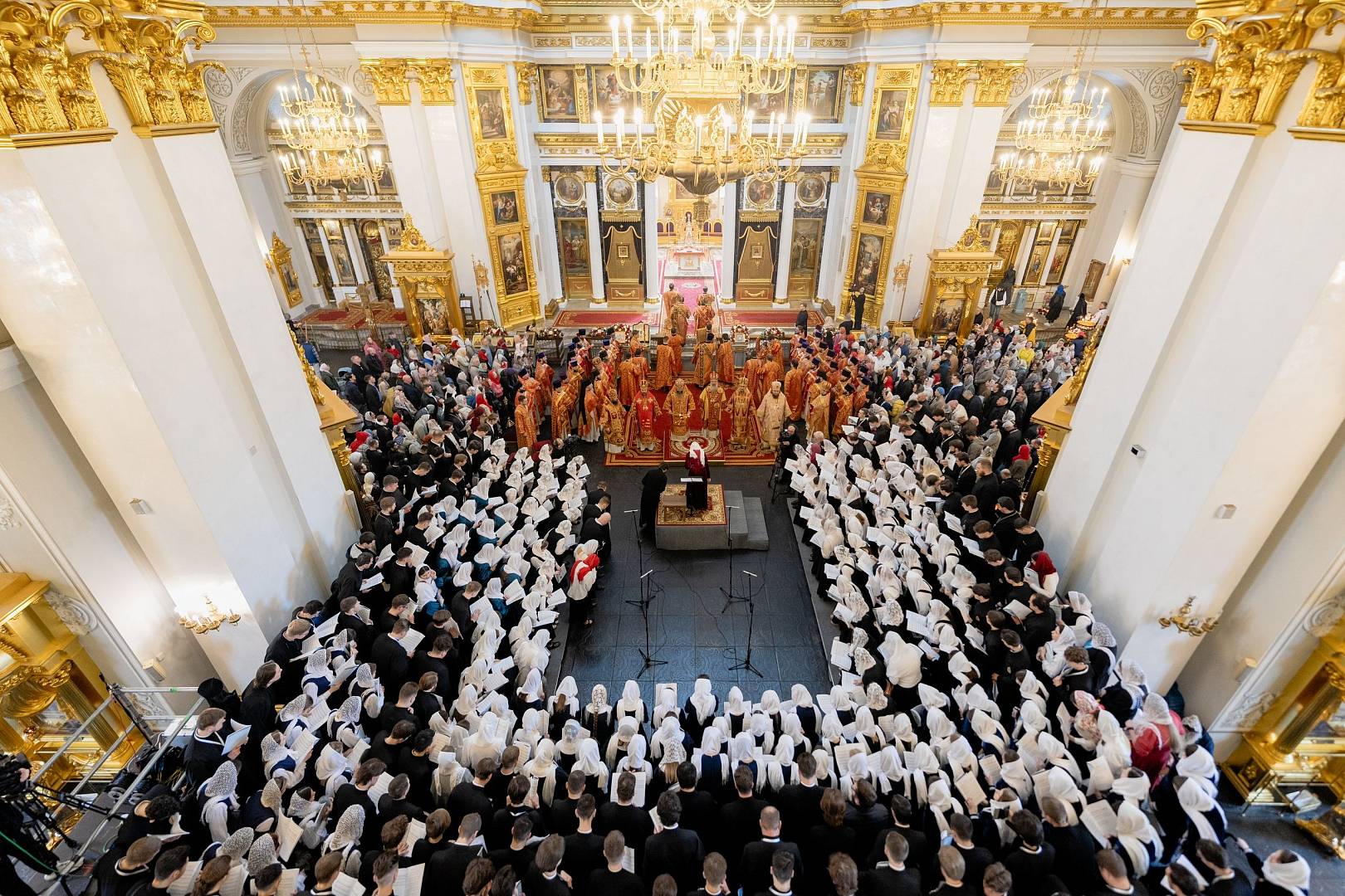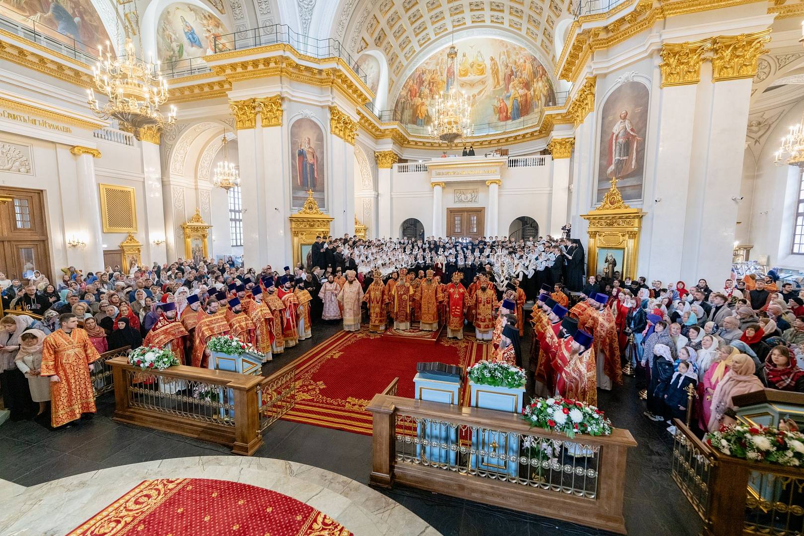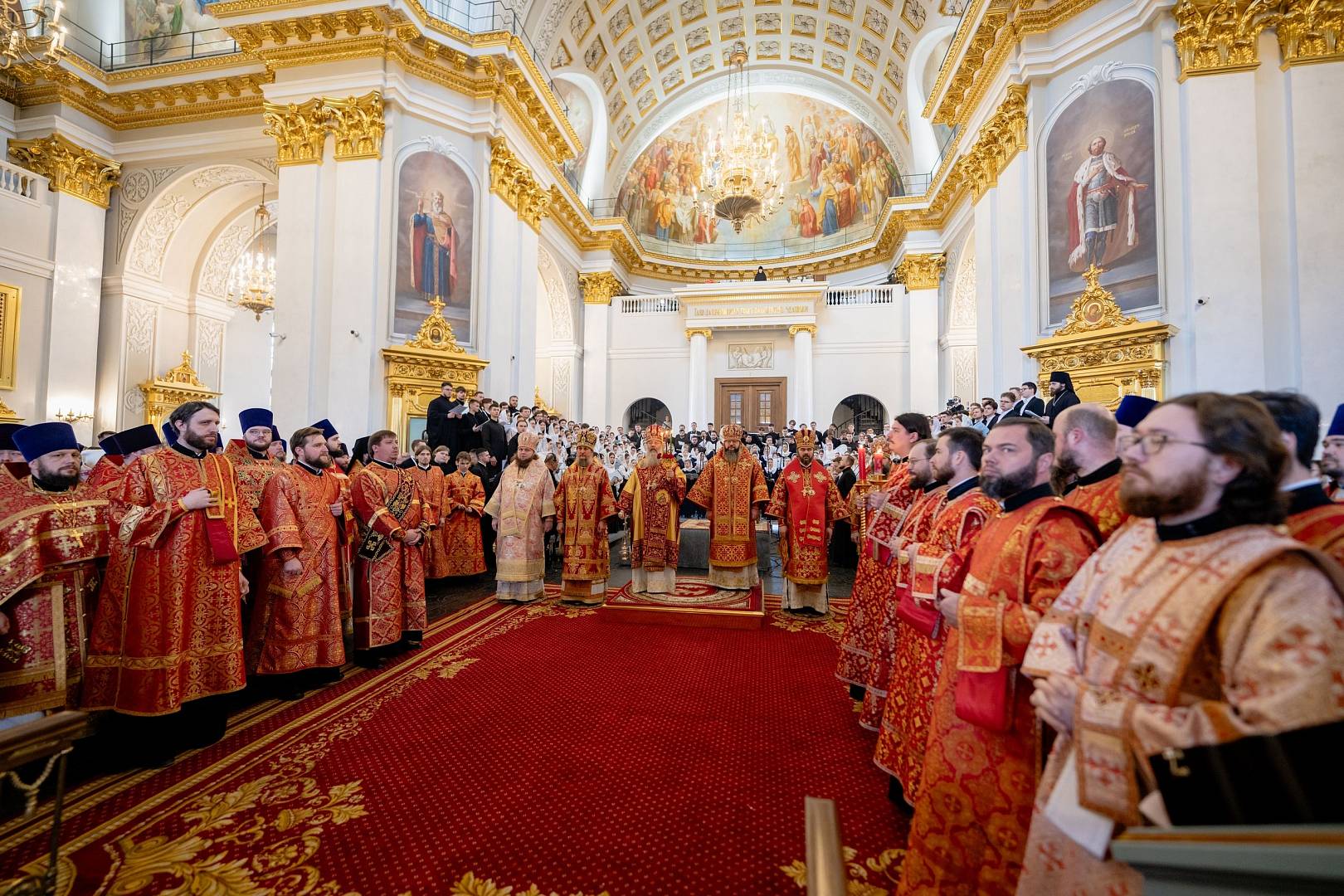 Песнопения Литургии исполнил сводный хор участников IV Всероссийского хорового фестиваля для регентских отделений духовных учебных заведений Русской Православной Церкви, в соста. Руководила сводным хором лауреат международных конкурсов, преподаватель факультета церковных искусств, регент смешанного хора Санкт-Петербургской духовной академии Раиса Гундяева.