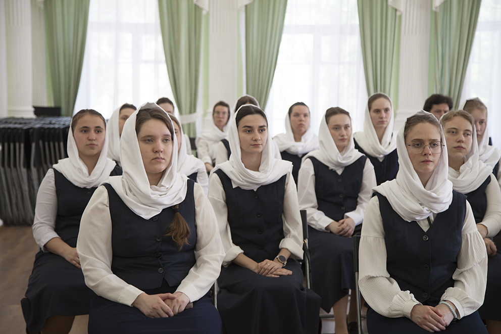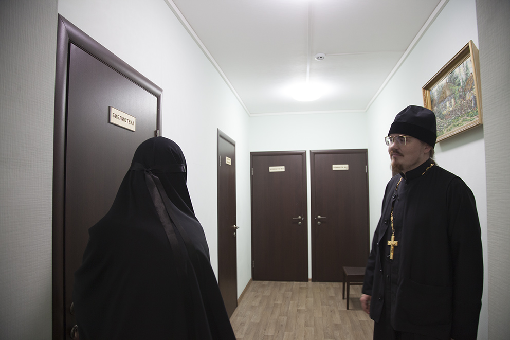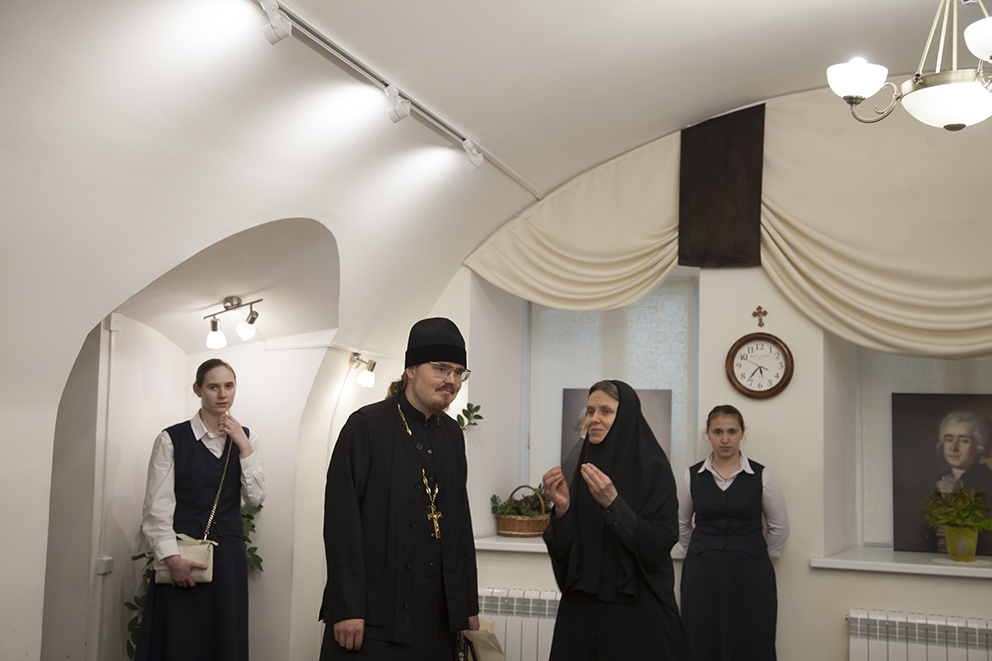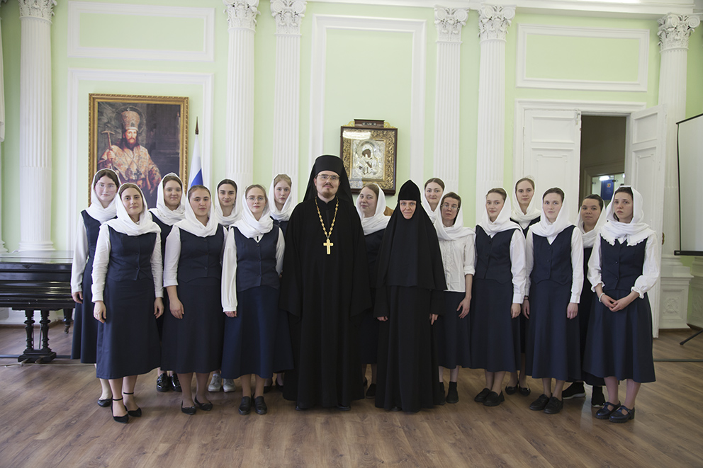 После встречи отец Платон посетил регентскую школу, которая располагается на территории Казанского женского монастыря. Руководитель регентской школы монахиня Георгия (Кислова) показала аудитории и библиотеку, рассказала об учебном и воспитательном процессе.