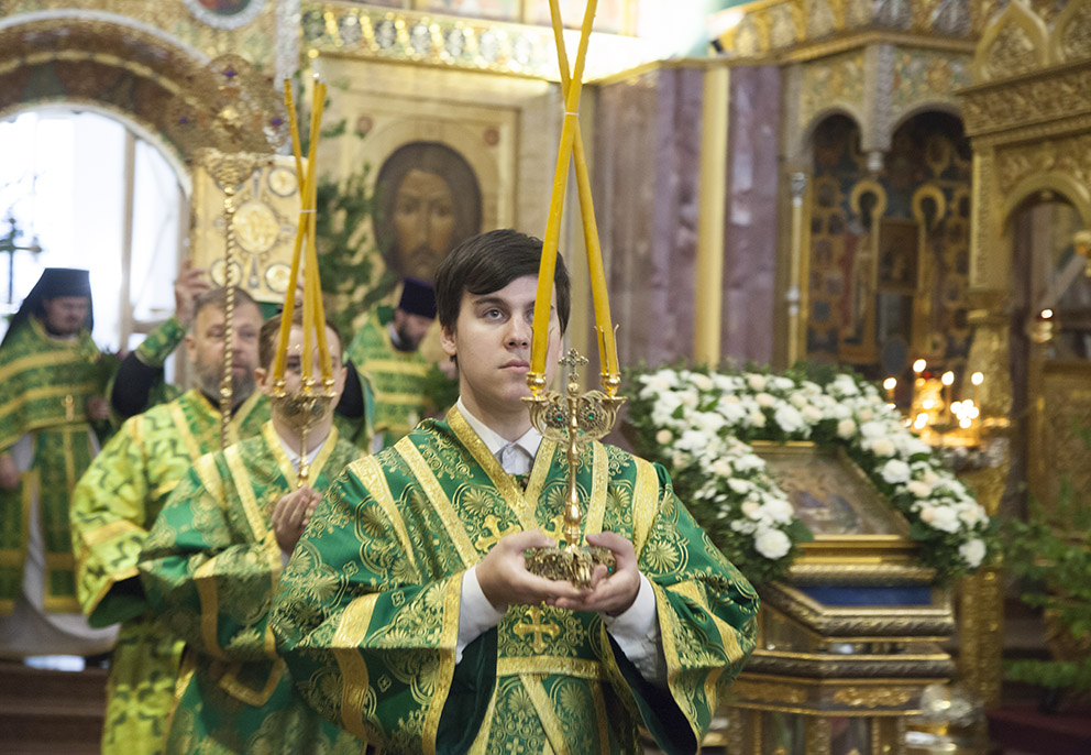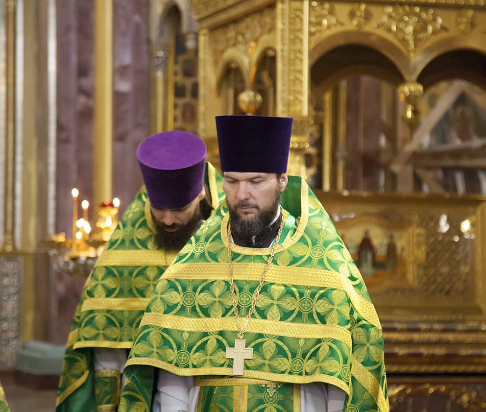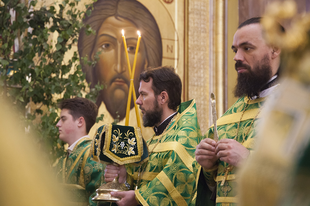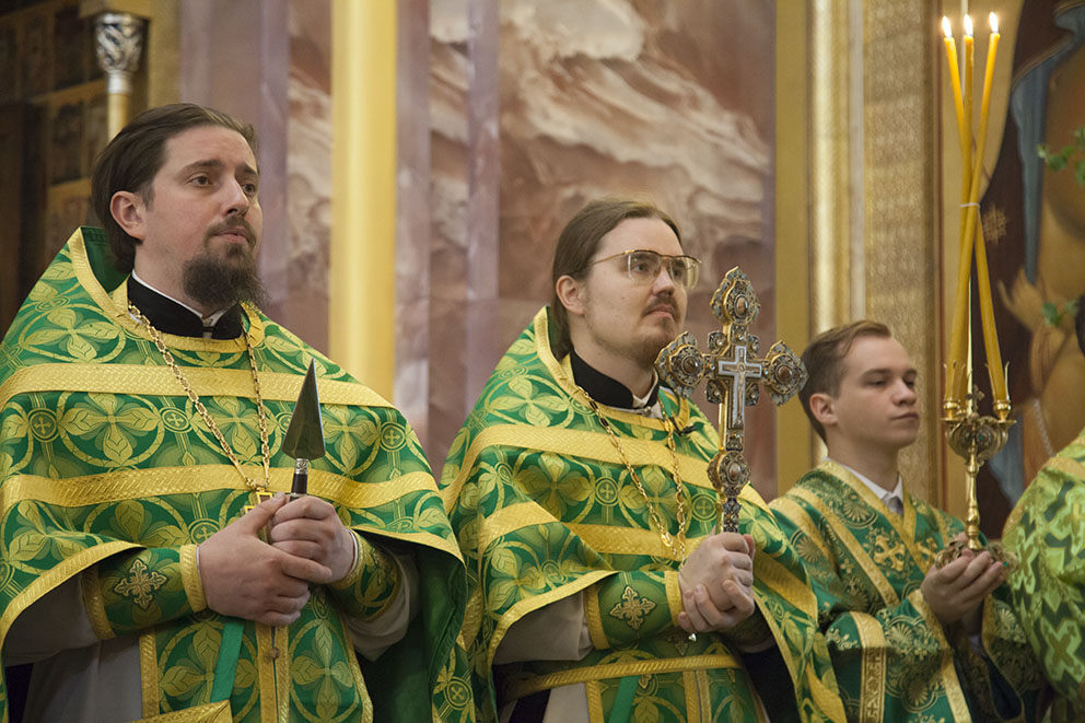 В ДЕНЬ ПЯТИДЕСЯТНИЦЫ ПРЕДСТАВИТЕЛИ АДМИНИСТРАЦИИ СЕМИНАРИИ СОСЛУЖИЛИ МИТРОПОЛИТУ ВАДИМУ В УСПЕНСКОМ СОБОРЕ