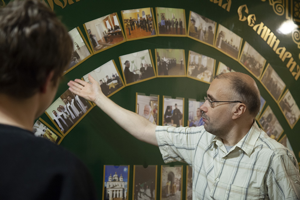 Об истории духовной школы и о современной жизни семинарии рассказал преподаватель Олег Губкин. Затем для гостей была проведена экскурсия по семинарскому храму, освященному в честь священномученика Арсения, библиотеке и аудиториям. В завершении встречи гости посетили трапезную и пообщались за чаепитием.