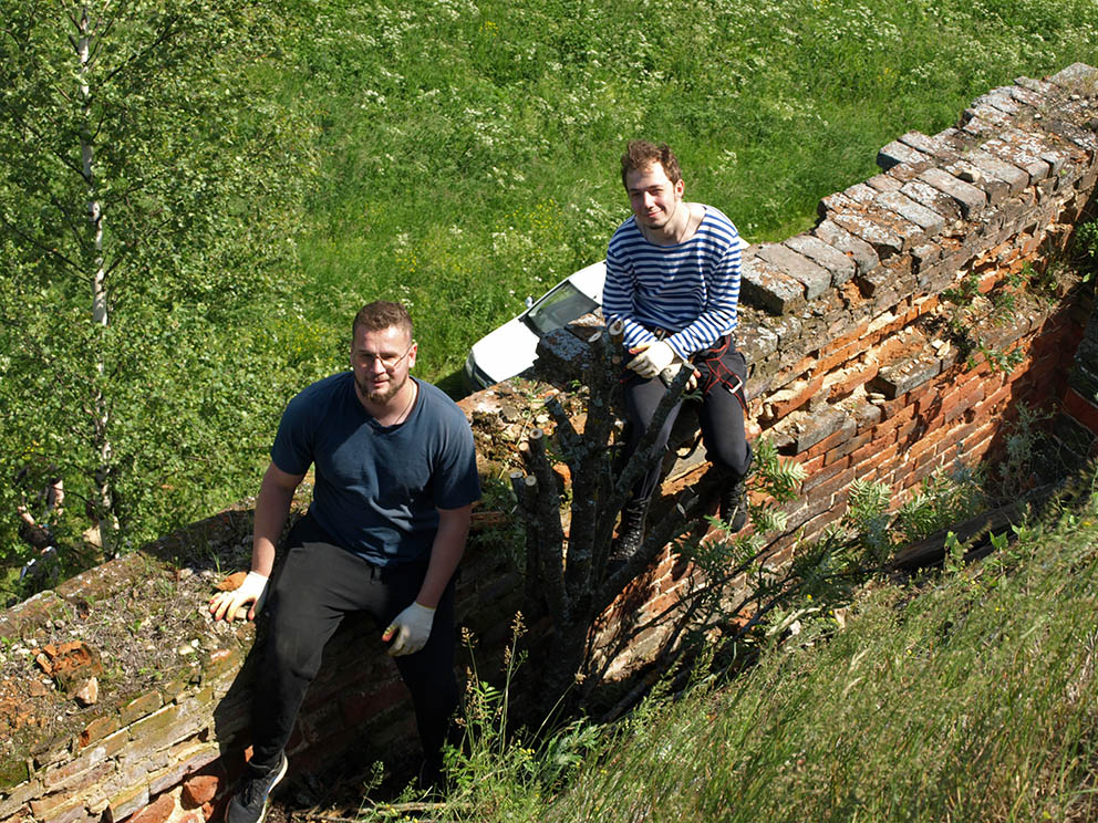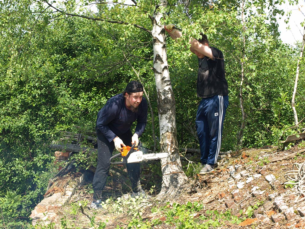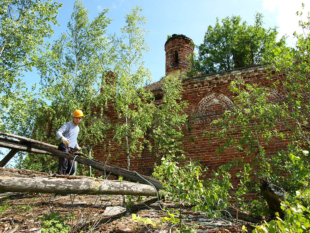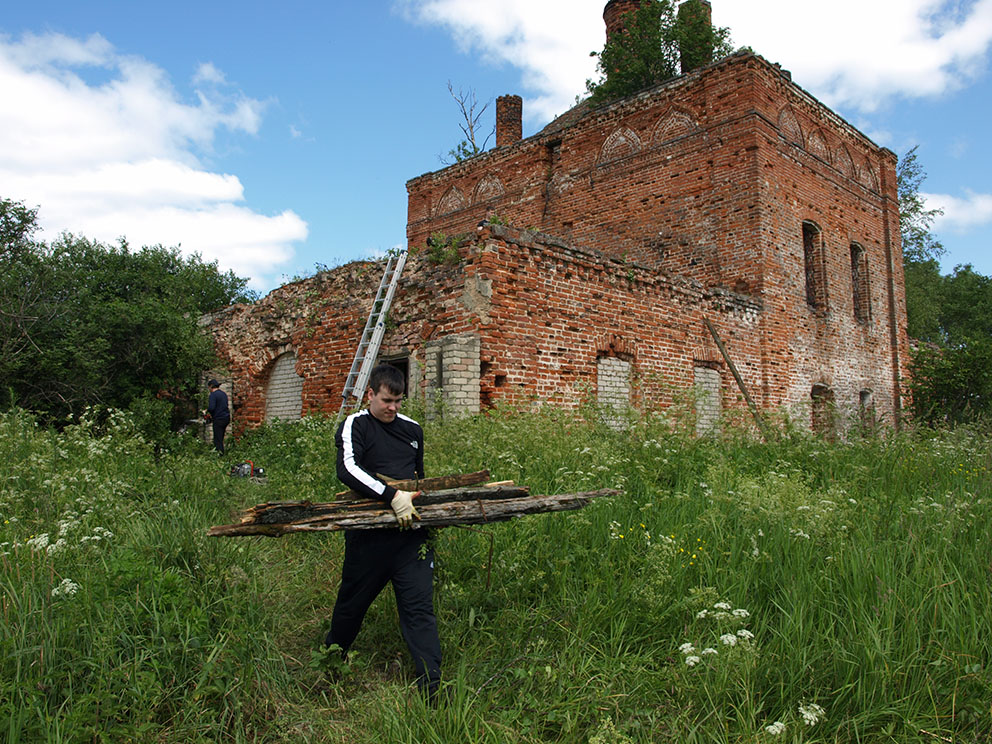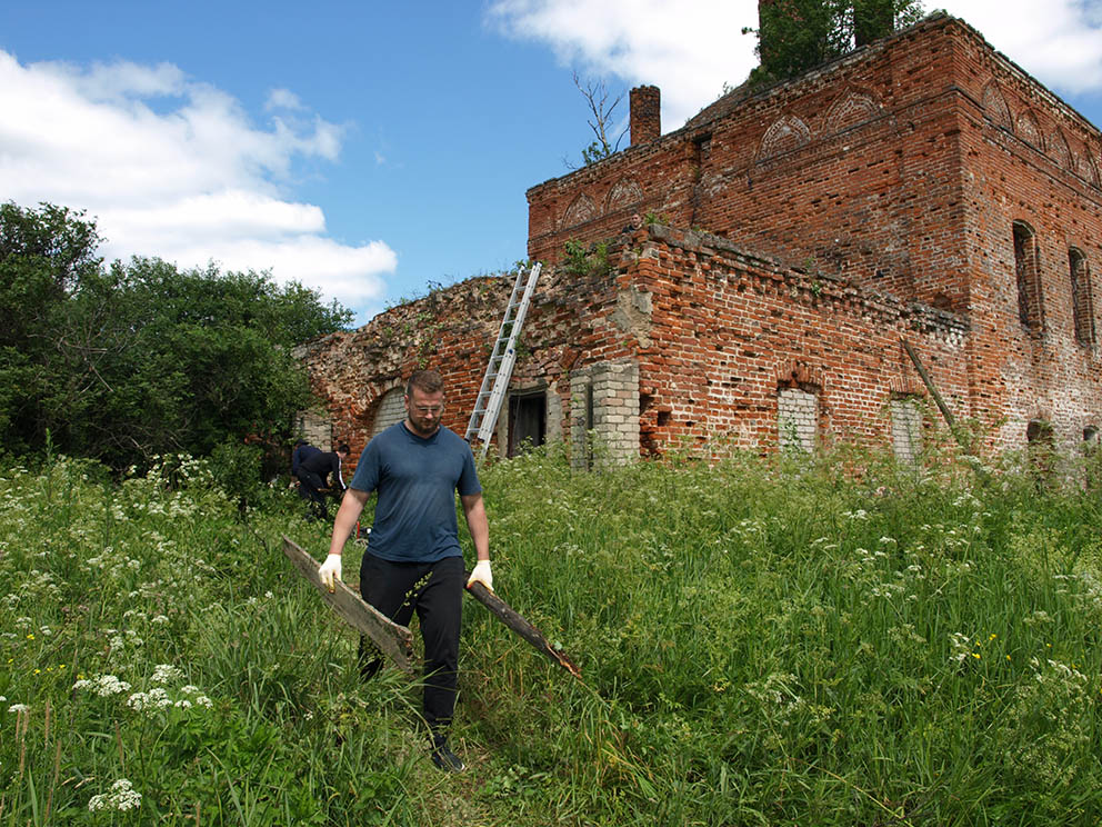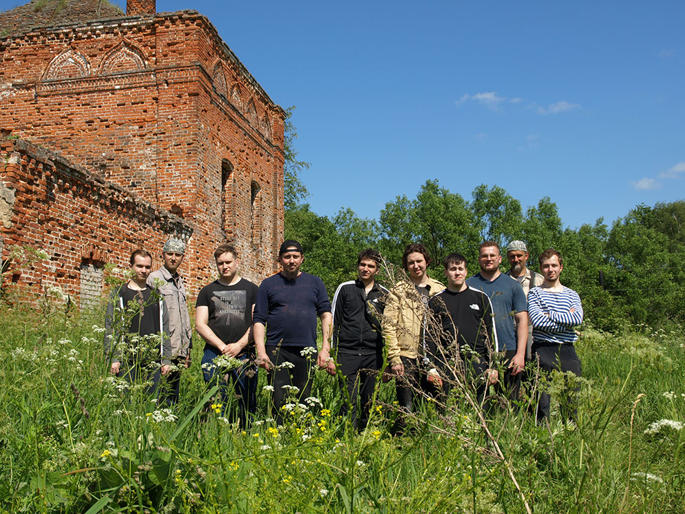 В субботу семинаристы вместе с проректором по воспитательной работе иереем Димитрием Пчелкиным готовили храм к совершению Божественной литургии. Церковь расчистили с внешней стороны от кустарника, вычистили от мусора пол четверика и алтарной части.