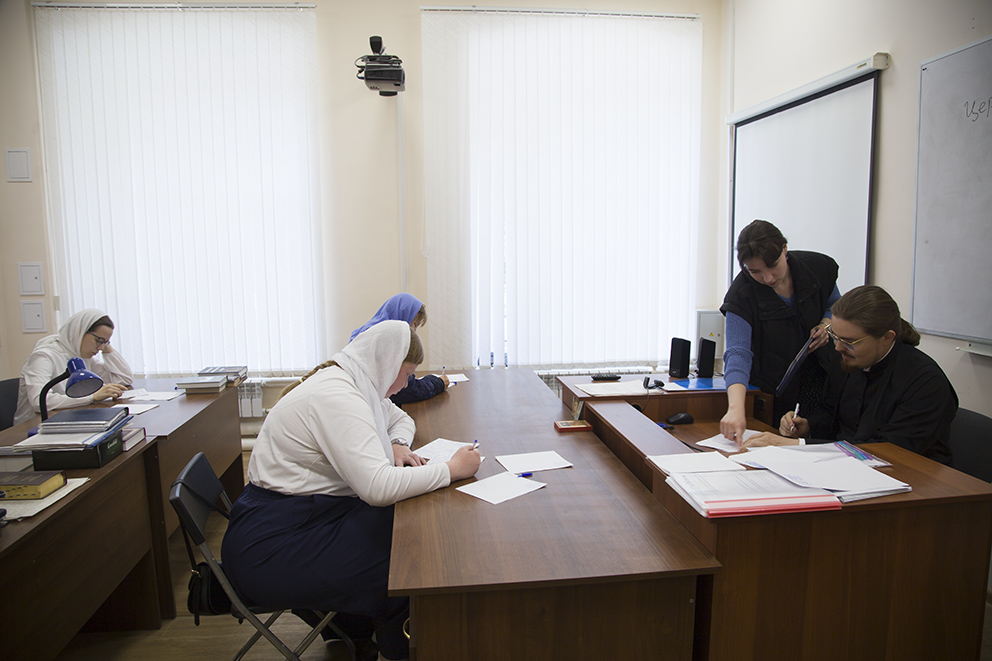 На экзаменах поступающие написали изложение по русскому языку, продемонстрировали знания по Библейской истории Ветхого и Нового Заветов, церковному уставу, навыки чтения Псалтири, показали теоретические и практические знания по сольфеджио и теории музыки, уровень владения игры на фортепиано. Преподаватели оценили навыки церковного пения, вокальные данные и владение голосом. Экзамен по русскому языку принимал преподаватель семинарии Титов Олег Анатольевич, по Библейской истории – преподаватель Губкин Олег Васильевич. Экзамены по фортепиано, сольфеджио и вокалу принимали преподаватели Регентской школы Мирзакулова Татьяна Васильева, Федорова Елизавета Александровна и Додонов Владимир Алексеевич.