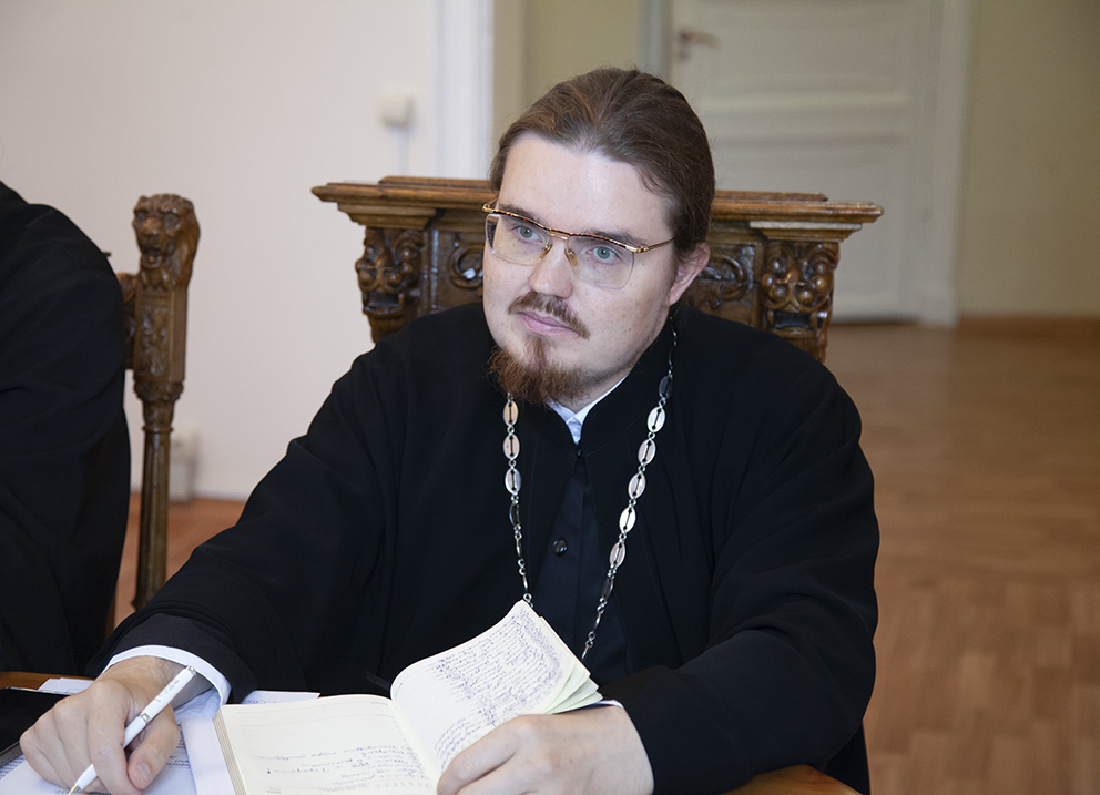 Ректор семинарии иеромонах Платон (Кудласевич) в ходе заседания рассказал о приоритетных направлениях развития Ярославской духовной школы и о проведении набора студентов в 2026 году.