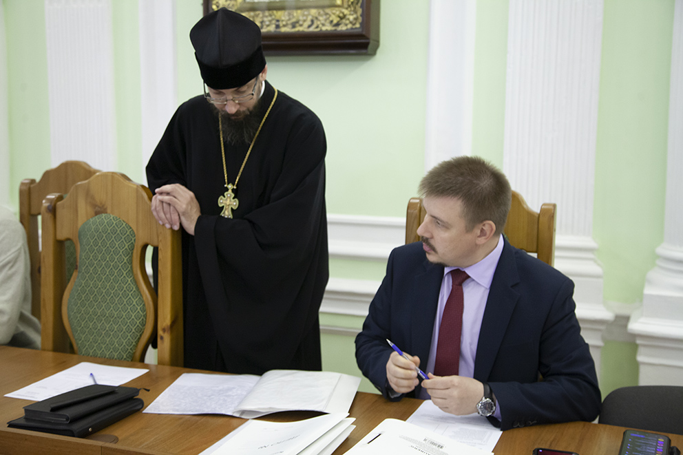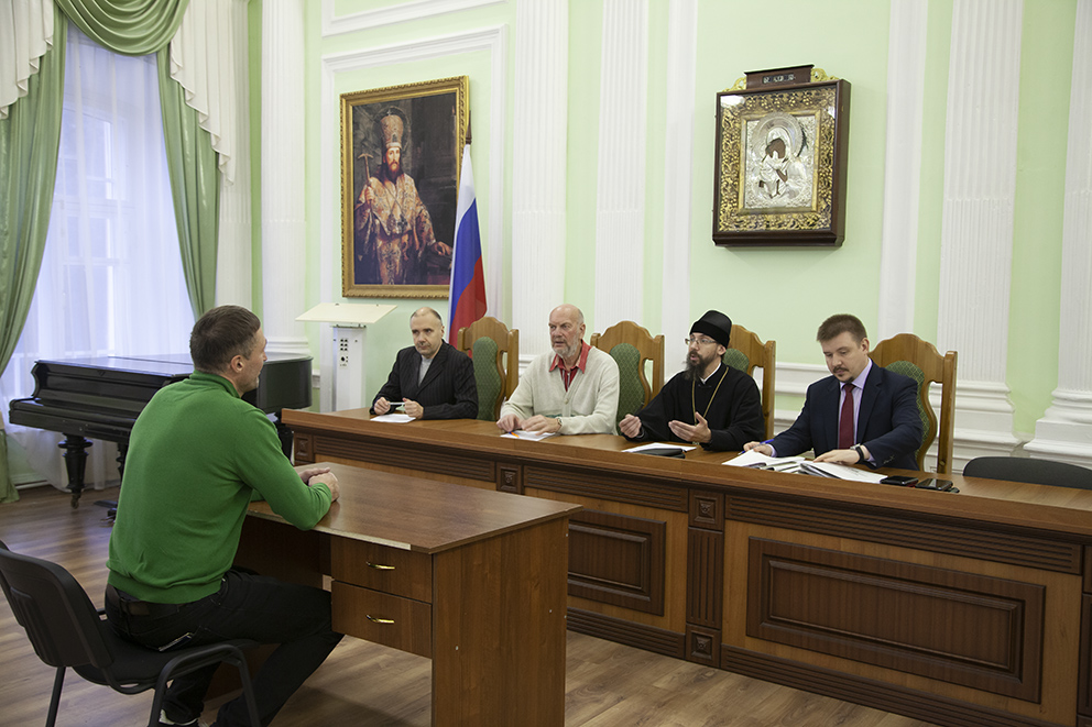 В Ярославской духовной семинарии прошло собеседование на курсах подготовки церковных специалистов. С абитуриентами познакомились и пообщались руководитель Отдела религиозного образования и катехизации Ярославской митрополии протоиерей Павел Рахлин, проректор по научной работе А. Г. Шустров, руководитель курсов и проректор по учебной работе Д. А. Андрианов, преподаватель О. В. Губкин.