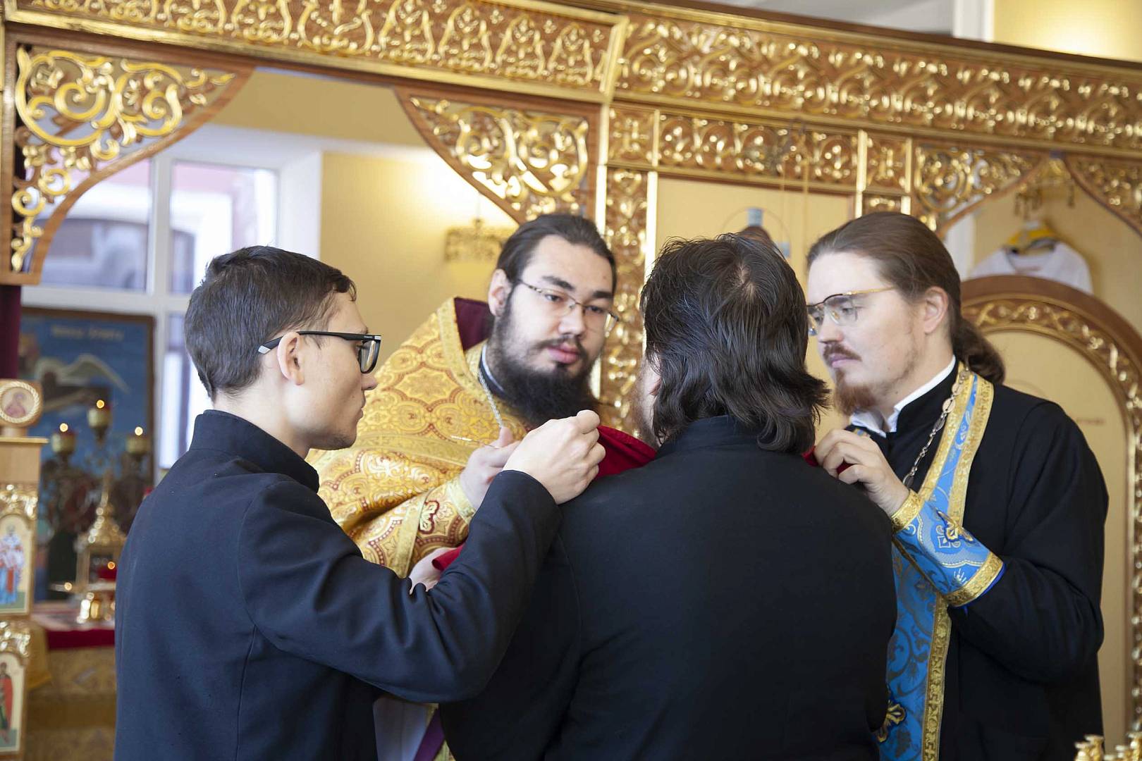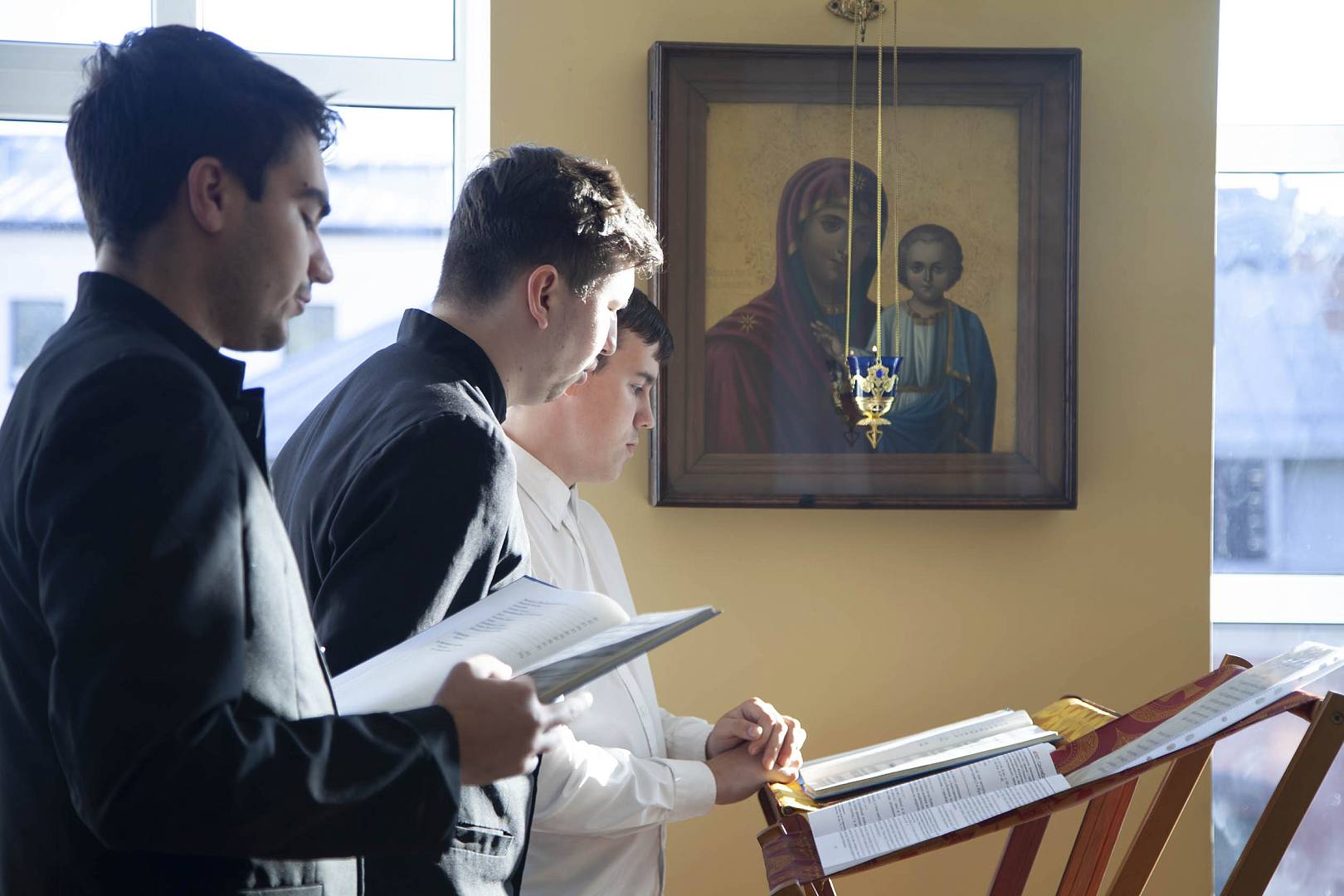 В семинарском храме в честь священномученика Арсения (Мацеевича) в учебное время у воспитанников семинарии проходит богослужебная практика.