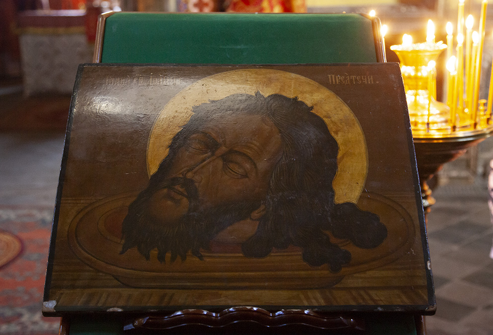 Святого Иоанна Крестителя, который предсказал пришествие Мессии и крестил Иисуса Христа в реке Иордан, заключили в темницу по приказу царя Ирода Антипы. Ирод в то время правил в Галилее, и великий пророк обличал грехи и злодеяния его и его окружения. Тетрарх (то есть один из четырех римских правителей Иудеи) боялся казнить святого: его любил народ, и Ирод страшился народного гнева. Но жена его брата Иродиада, с которой он сожительствовал, подговорила свою дочь Саломею обманом заставить царя убить узника. На пиру Саломея танцевала для Ирода. Танец так понравился ему, что он поклялся исполнить любое ее желание. Саломея попросила голову Иоанна на блюде. Ирод исполнил просьбу. Так пророк принял мученическую смерть.