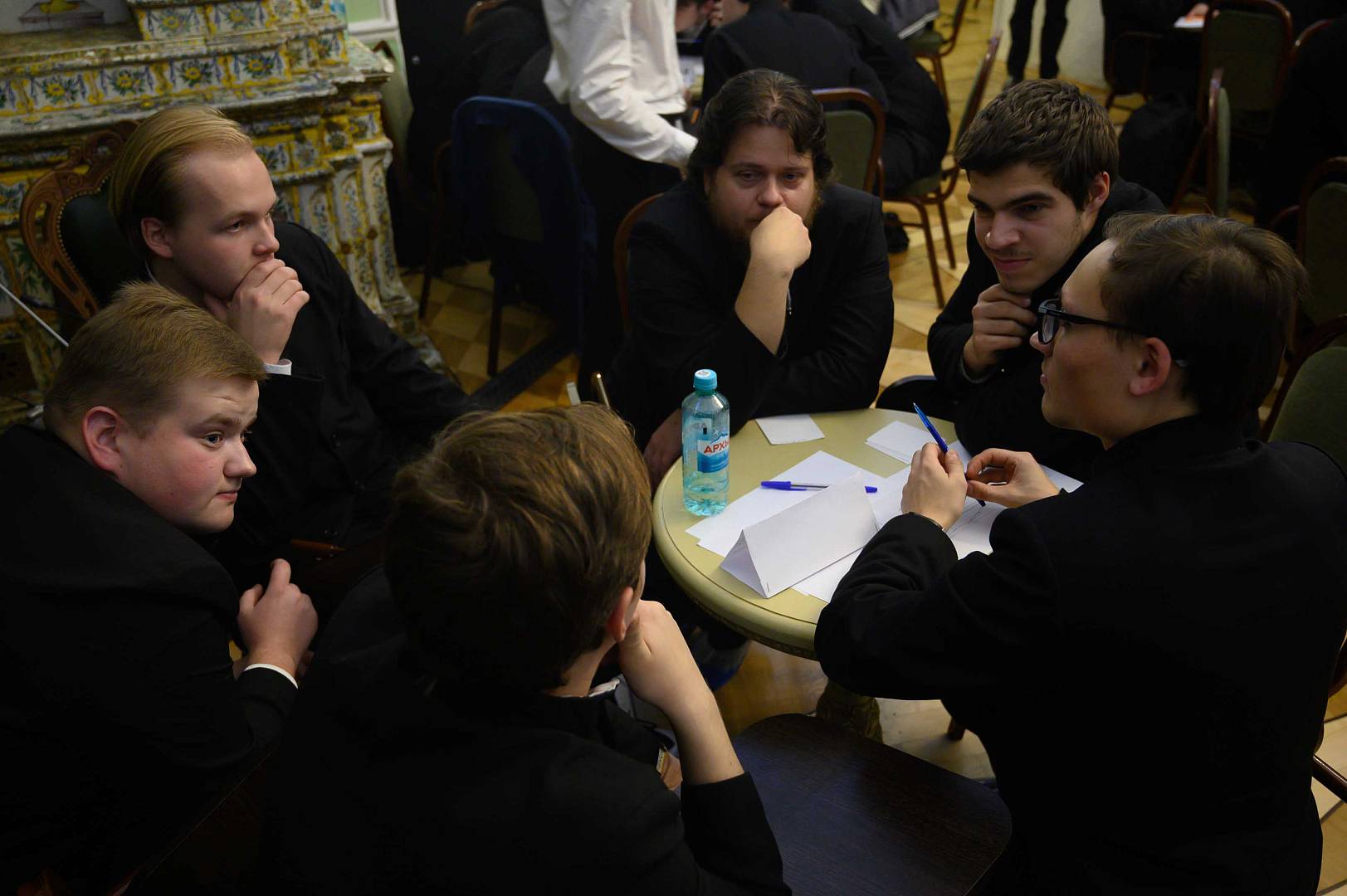 2 ноября в Елизаветинском зале Московской духовной академии состоялся открытый турнир по интеллектуальной игре «Что? Где? Когда?». За титул знатоков боролись команды духовных учебных заведений, а также православной молодежи Сергиево-Посадской епархии. Участие в игре приняла и команда воспитанников Ярославской духовной семинарии.