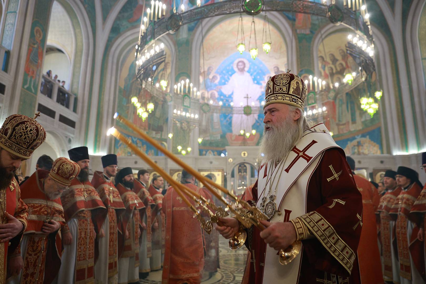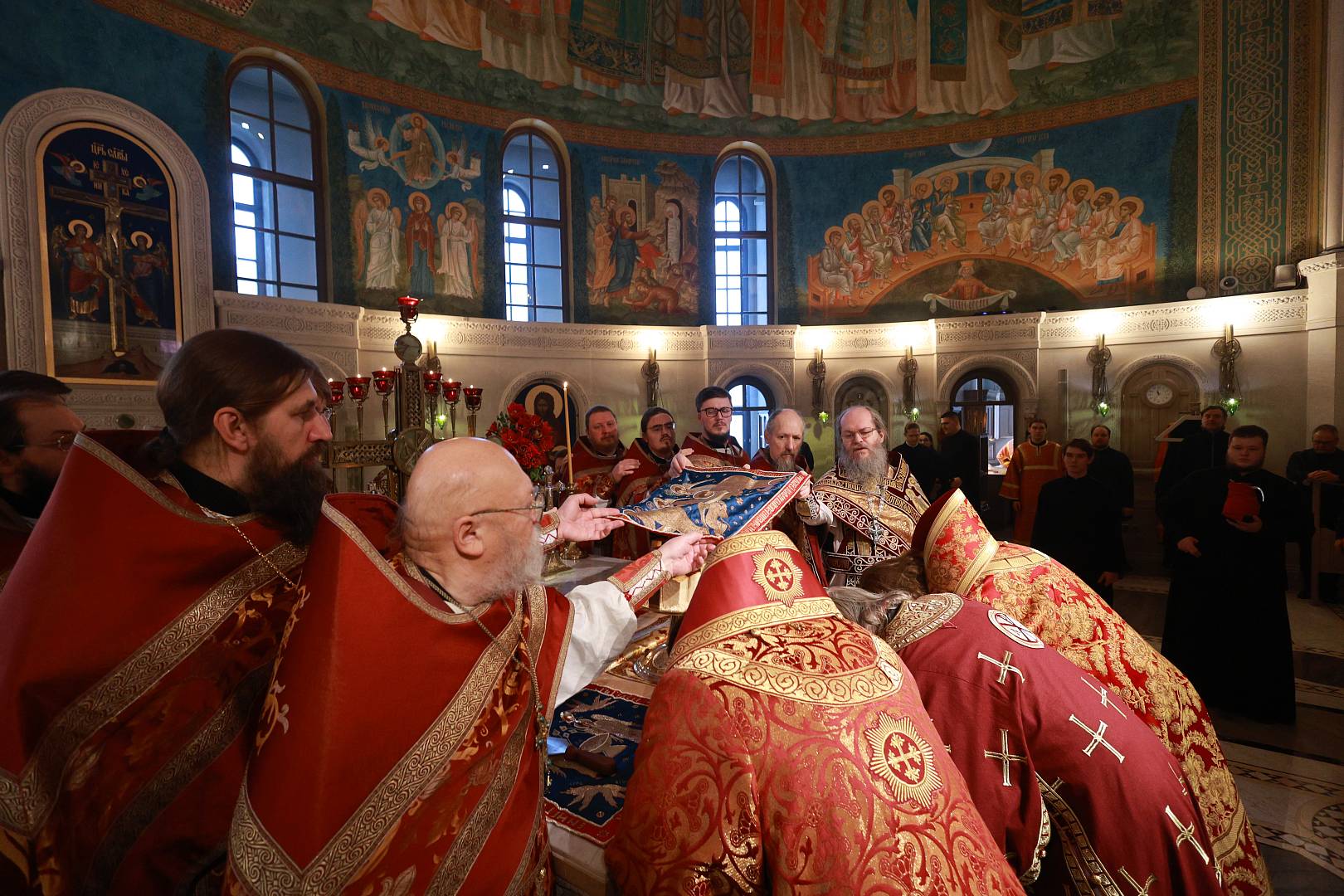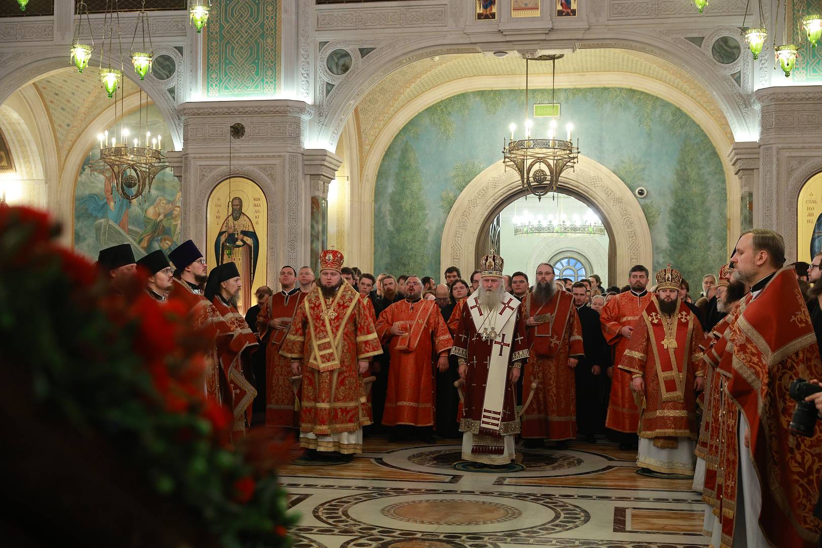 Божественную литургию возглавил викарий Патриарха Московского и всея Руси, председатель Синодального отдела по монастырям и монашеству митрополит Каширский Феогност. Ему сослужили епископ Петергофский Силуан, викарий Санкт-Петербургской епархии, ректор Санкт-Петербургской духовной академии и епископ Енисейский и Лесосибирский Игнатий.