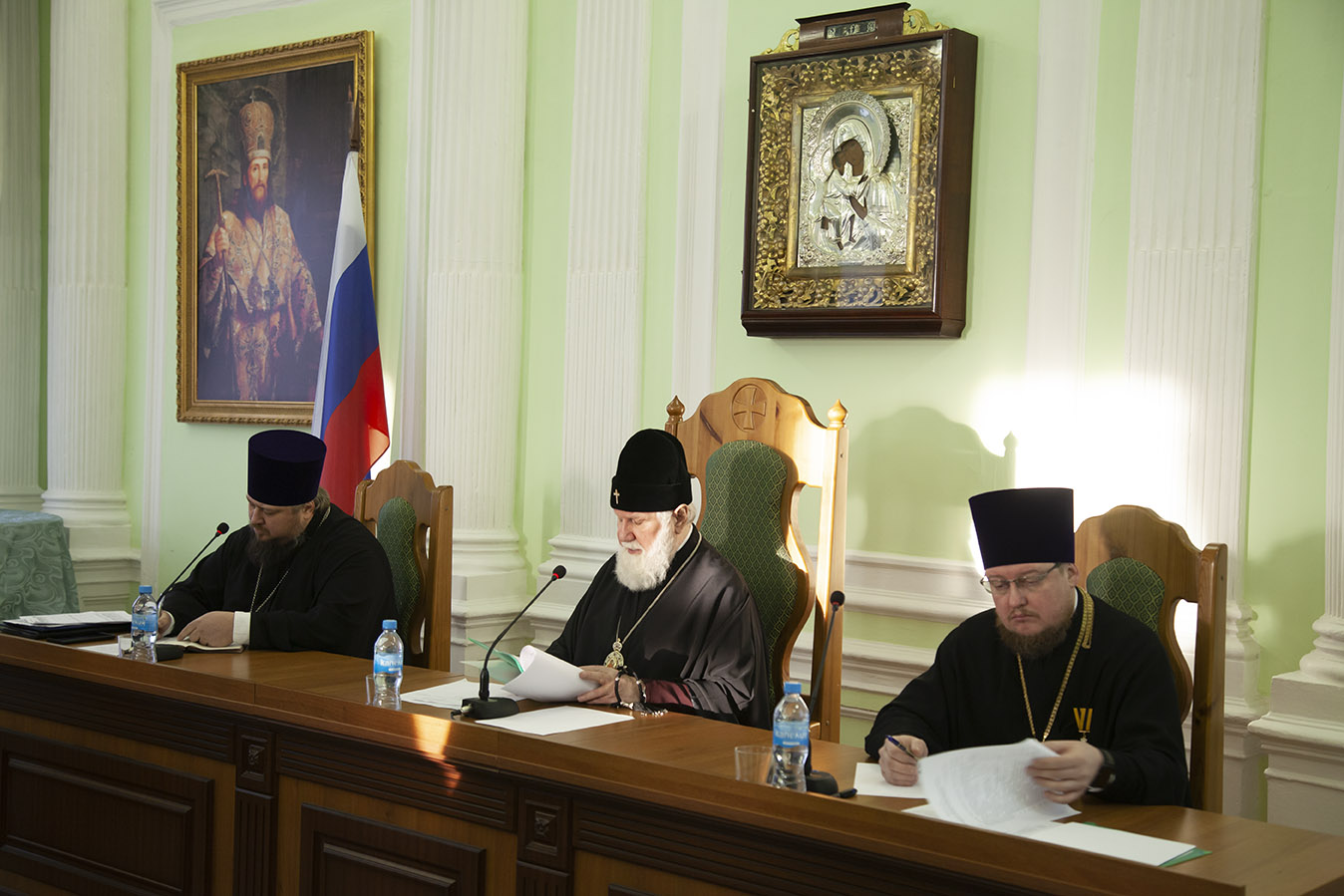 После доклада владыки митрополита, посвященного подведению итогов 2025 года, актуальным задачам и проблемам епархиальной жизни, на собрании выступили руководители отделов и комиссий епархии.