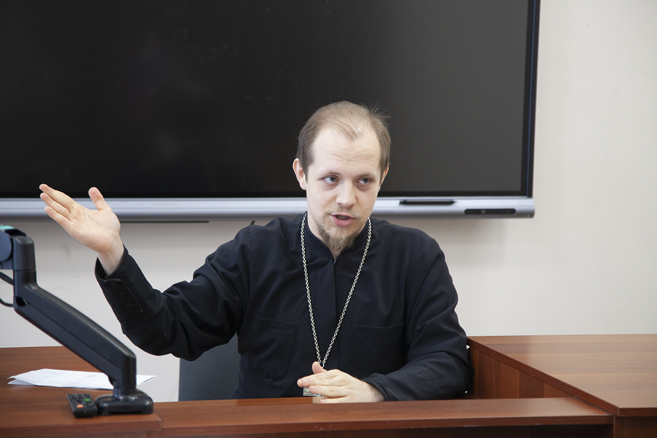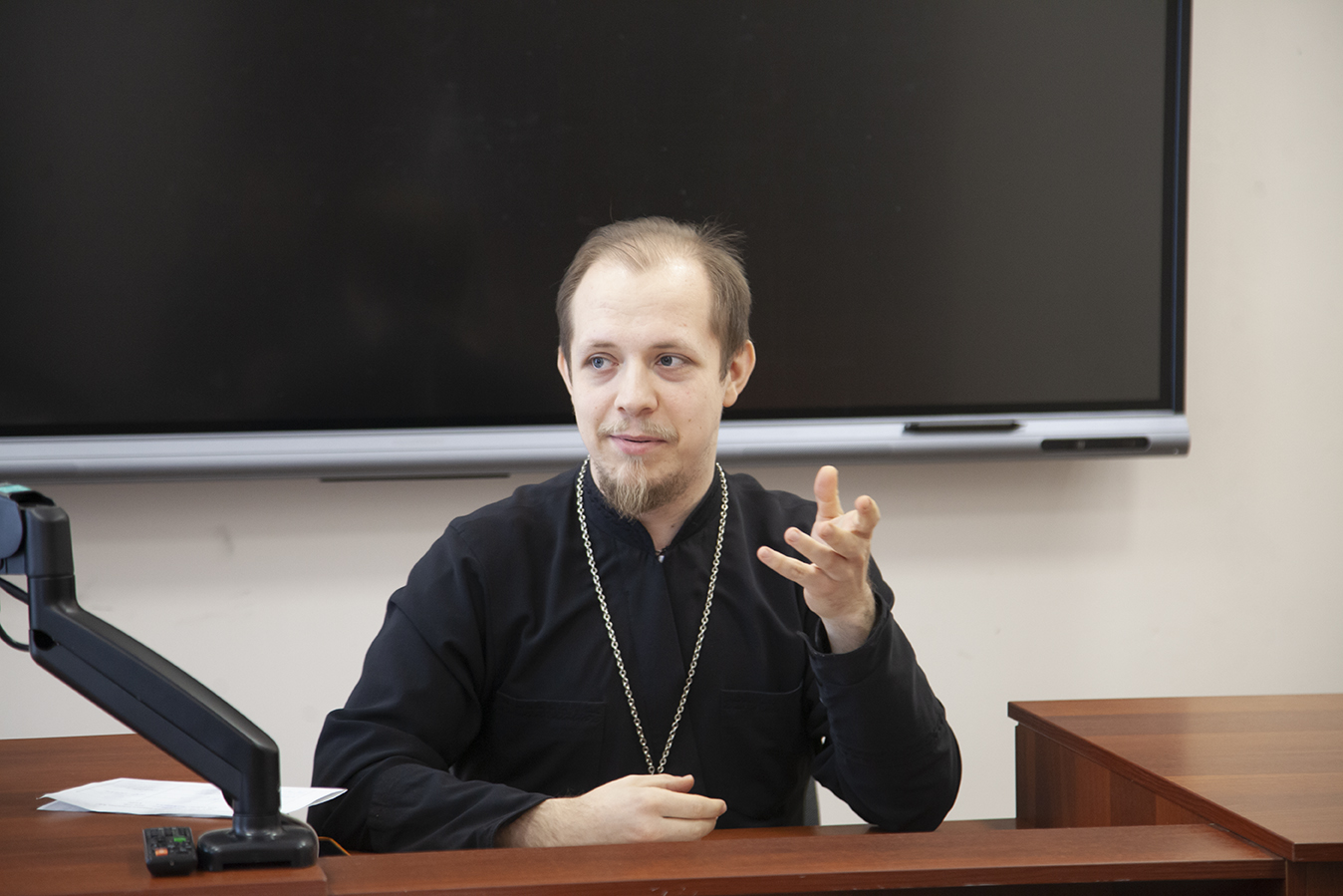 Как рассказать о православных догматах, о жизни в Церкви и ее Таинствах тем, кто плохо слышит, или не слышит совсем? Именно о своем опыте общения с глухими и слабослышащими людьми, об изучении русского жестового языка рассказал студентам 4 курса нашей семинарии преподаватель иерей Димитрий Королев.