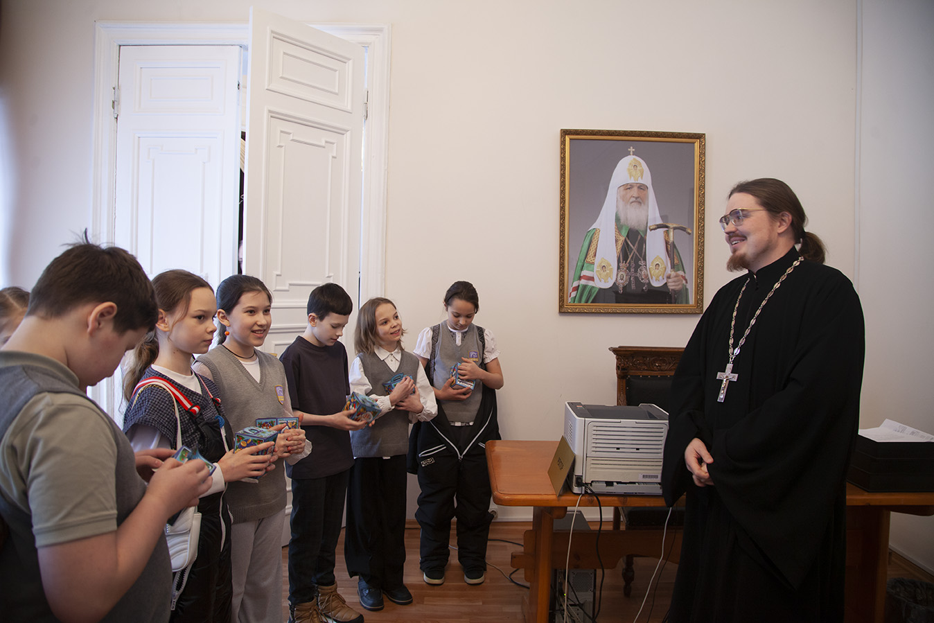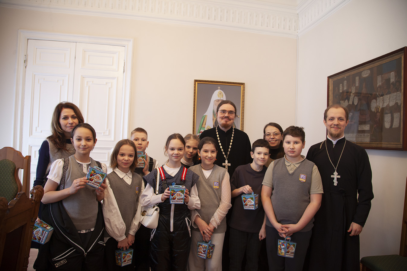 В конце экскурсии ректор духовной школы иеромонах Платон (Кудласевич) вручил юным гостям семинарии сладкие подарки.