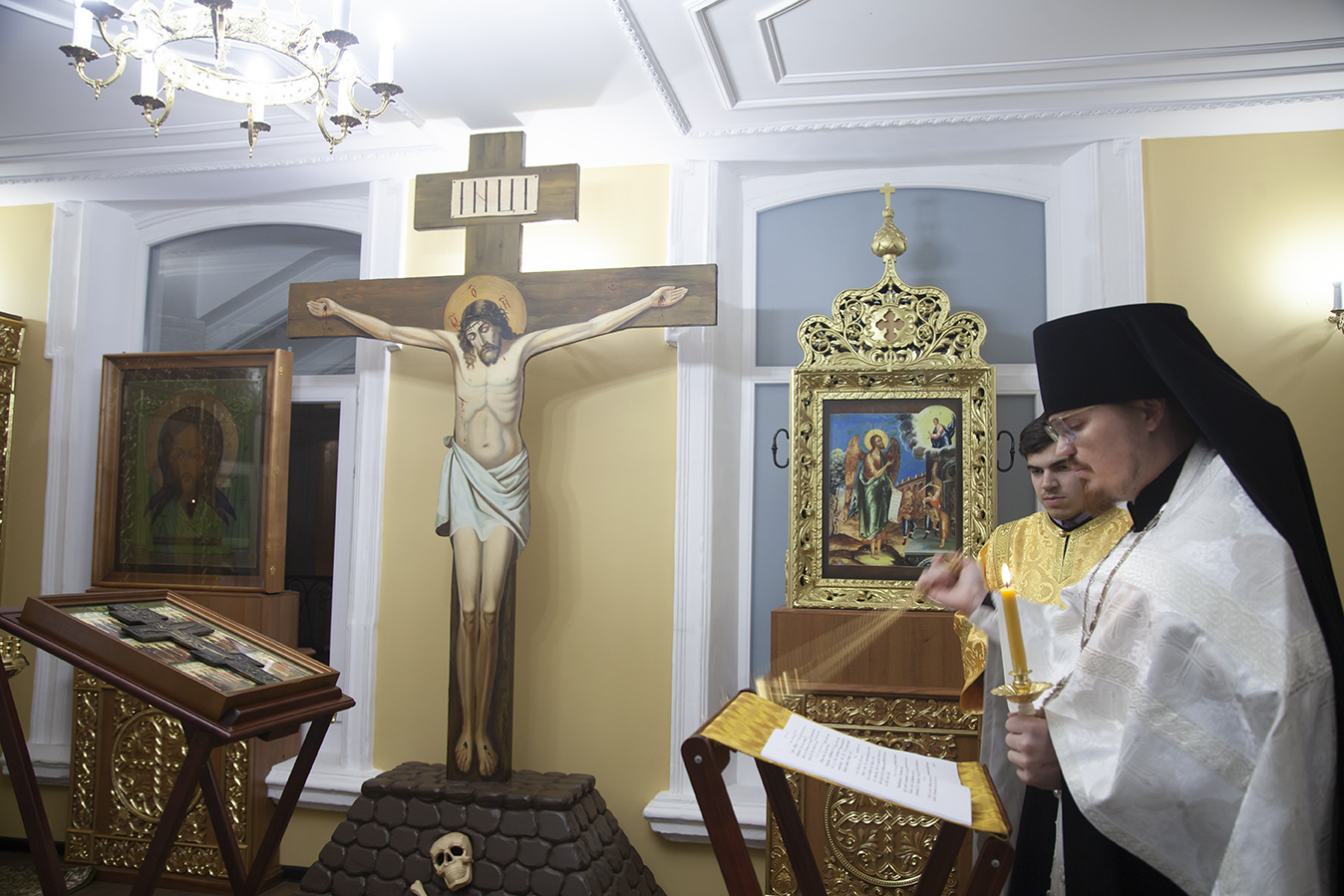 На Вселенскую Родительскую субботу и в канун дня поминовения в семинарском храме ректором духовной школы иеромонахом Платоном (Кудласевичем) были совершены вечернее богослужение и Божественная литургия.