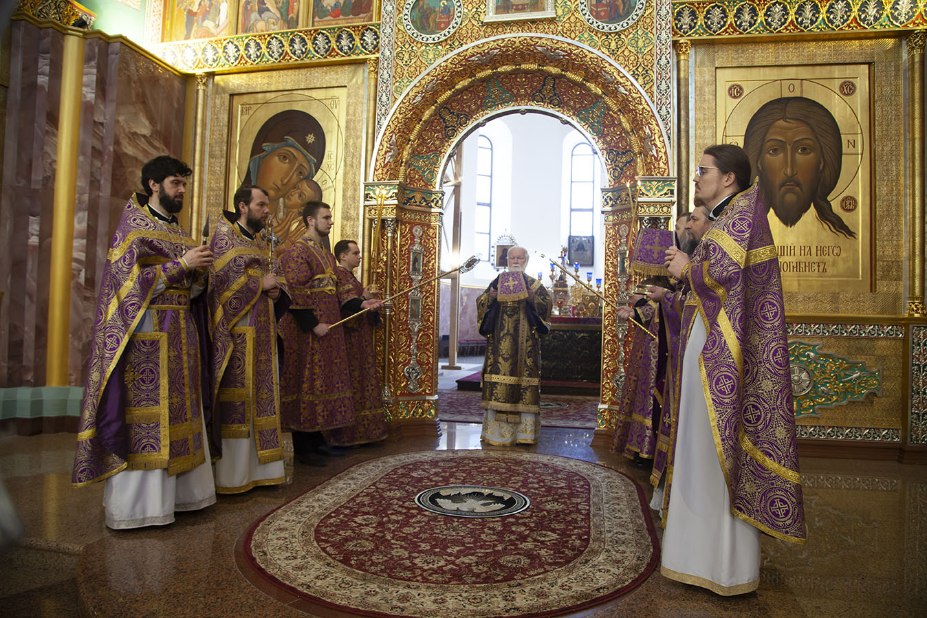 За Божественной литургией владыке митрополиту сослужили: наместник Спасо-Яковлевского монастыря, духовник семинарии игумен Сергий (Губин); преподаватель семинарии иерей Дионисий Цыбуляк; ректор семинарии иеромонах Платон (Кудласевич); иерей Роман Федосеев; проректор семинарии по инновационным технологиям иерей Артемий Пацкалев; заведующий методическим отделом семинарии иерей Димитрий Пчелкин; индивидуальный наставник иерей Глеб Крупнов; протодиакон Захария Лунгу, протодиакон Вадим Медведев.