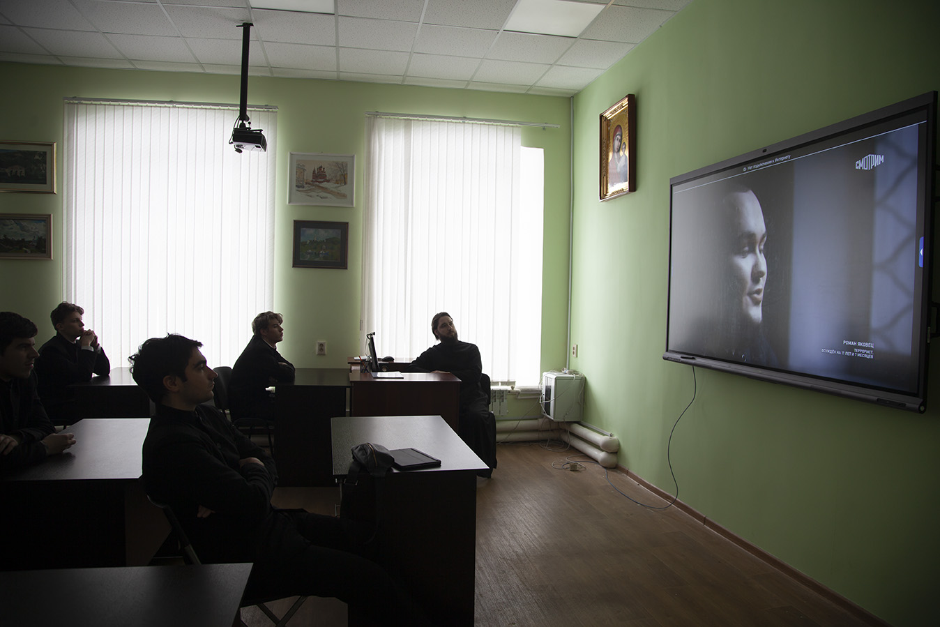 В Ярославской духовной семинарии прошла встреча семинаристов с проректором по воспитательной работе иереем Даниилом Лазурченко и просмотр документального фильма Андрея Медведева «Предательство».