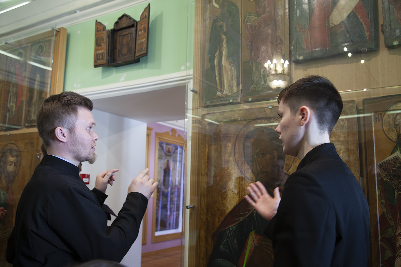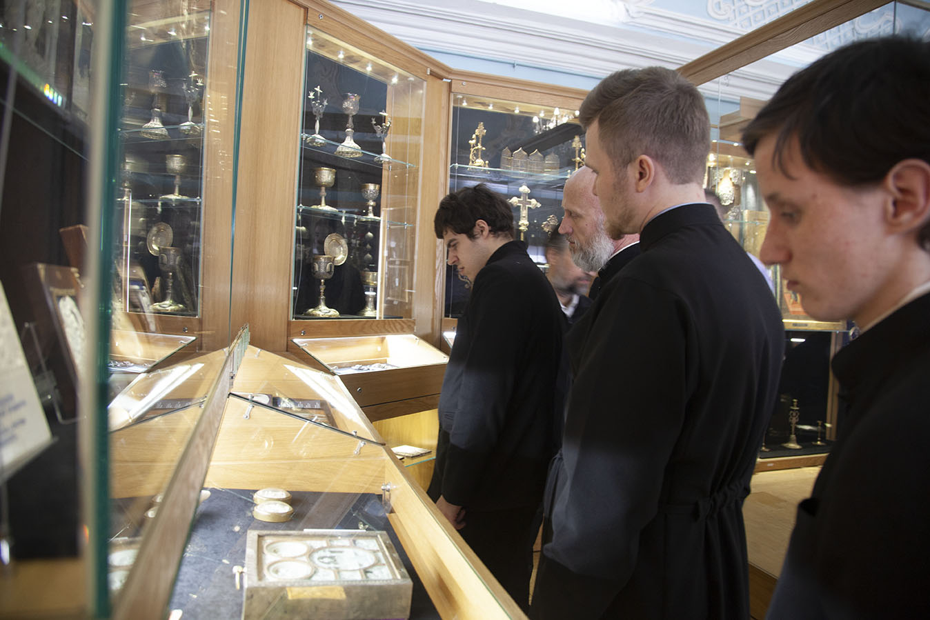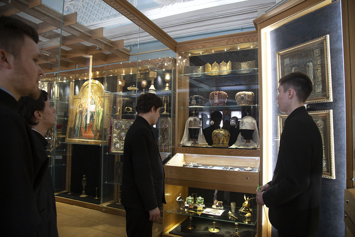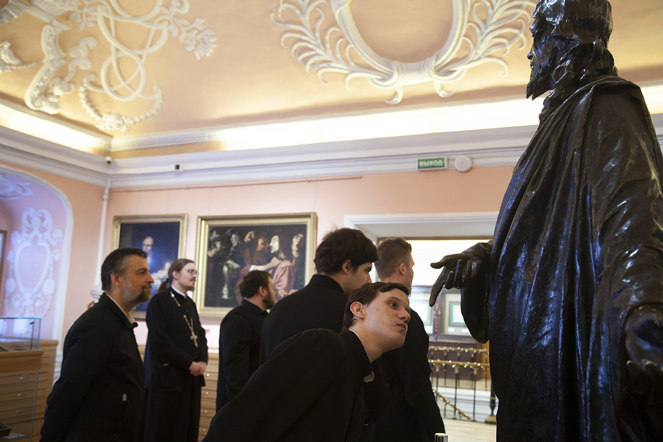 Утром паломники помолились за Божественной литургией в Успенском соборе Лавры. После трапезы для ярославцев была проведена подробная экскурсия по Московской духовной академии, Покровскому академическому храму и Церковно-археологическому кабинету.