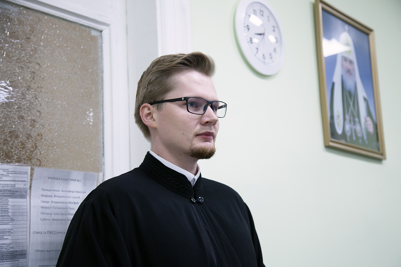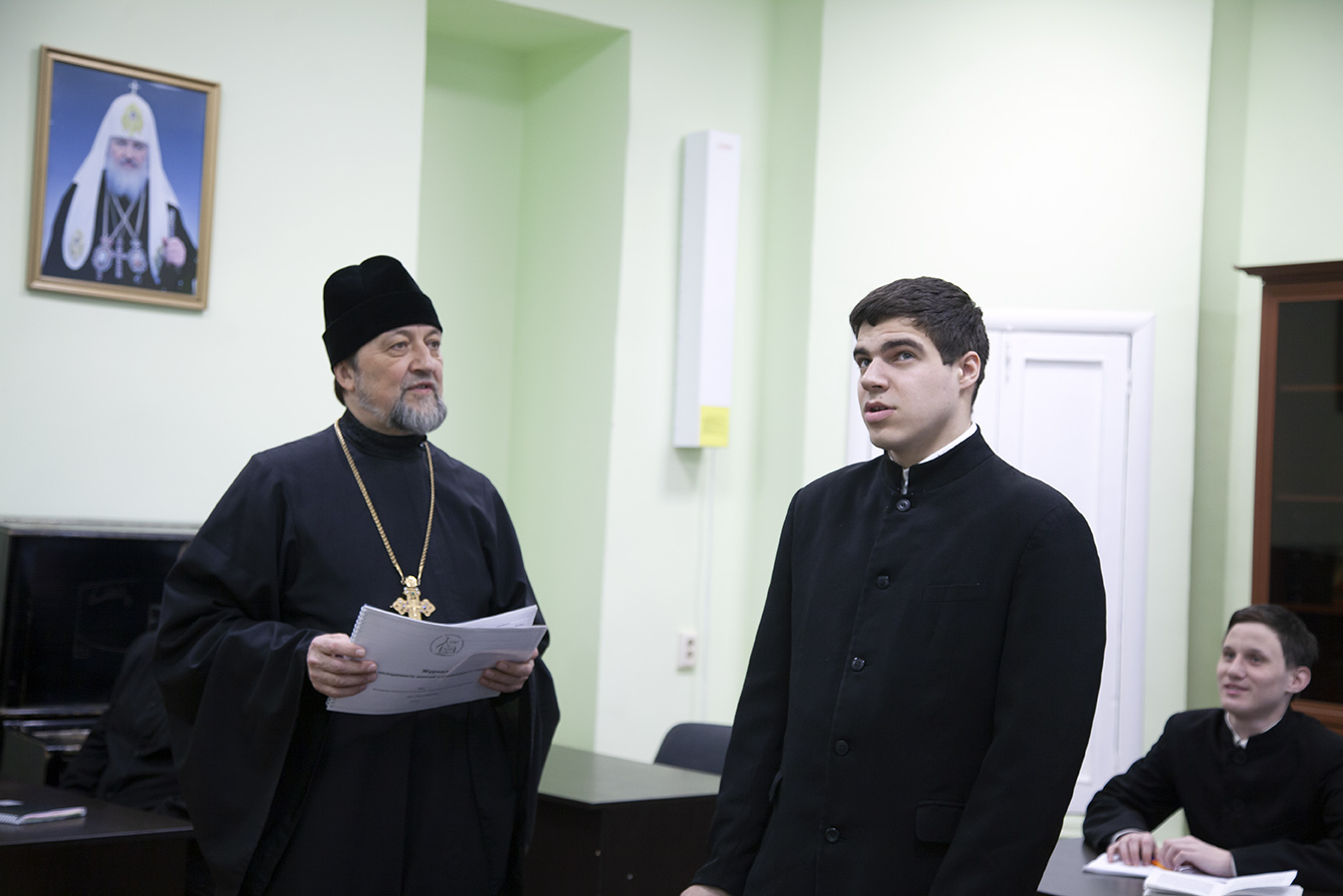 Протоиерей Максим Козлов проверил знания студентов семинарии. Во время проверки учащиеся первых трех курсов отвечали на вопросы отца Максима по пройденным дисциплинам.