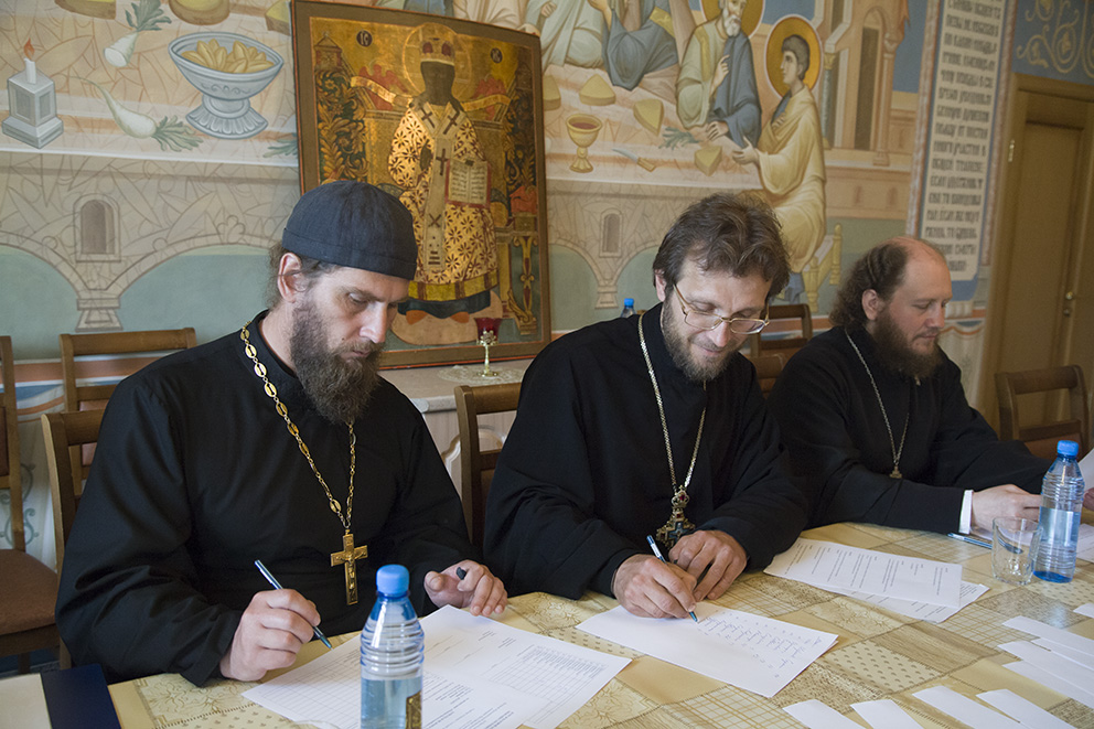 Зачет по дисциплине «Литургика» сдали 23 насельницы Толгского женского монастыря, два насельника Николо-Бабаевского мужского монастыря, две насельницы и одна послушница Казанского женского монастыря г. Ярославля. Вместе с членами аккредитационной группы зачет принимали руководитель курсов базовой подготовки в области богословия для монашествующих Ярославской митрополии настоятель Петровского мужского монастыря Ростова Великого, благочинный монастырей Ярославской епархии игумен Климент (Новиков) и первый проректор Ярославской духовной семинарии, преподаватель курсов иеромонах Сергий (Барабанов).