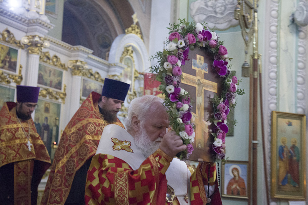 14 августа 2022 года – начало Успенского поста. В этот день Церковь празднует Изнесение Честных Древ Животворящего Креста Господня. В канун праздничного дня митрополит Ярославский и Ростовский Вадим совершил Всенощное бдение в Казанском женском монастыре.