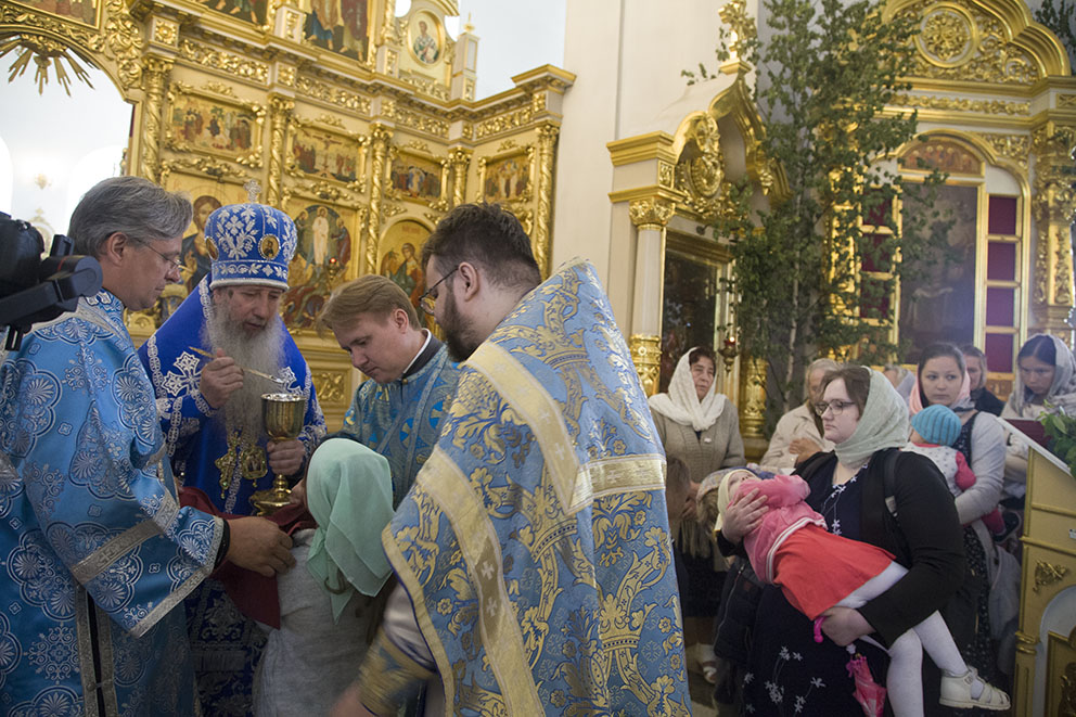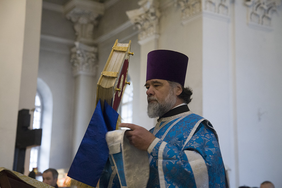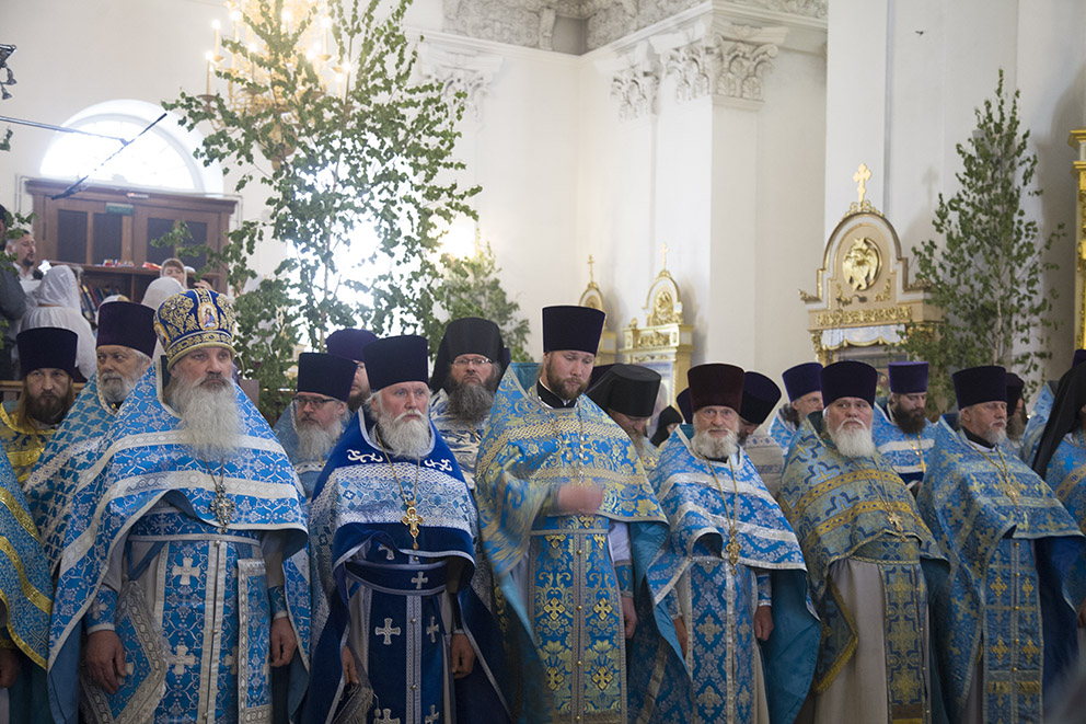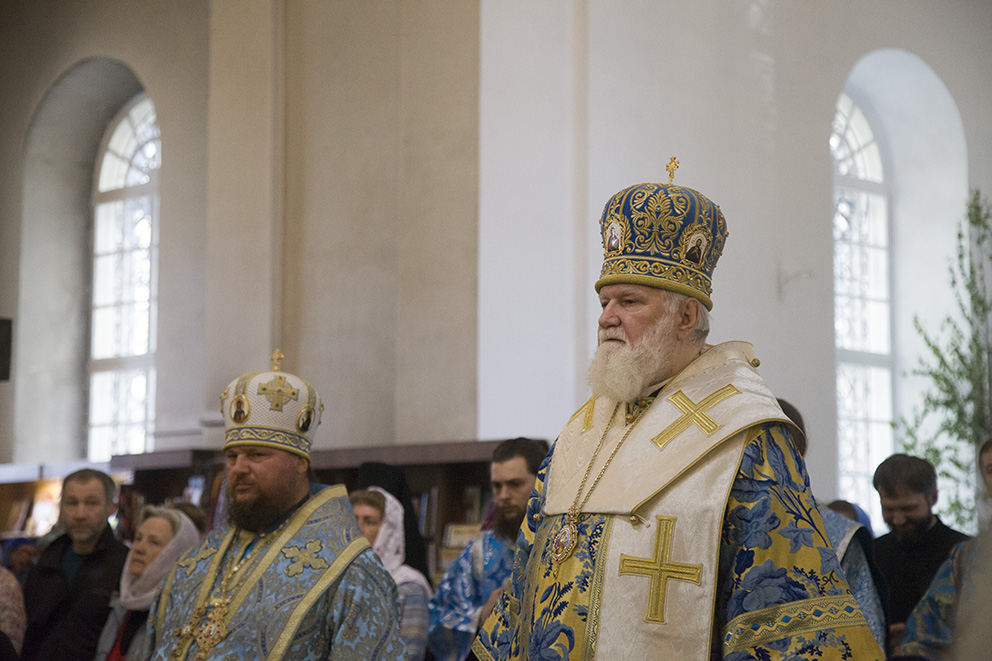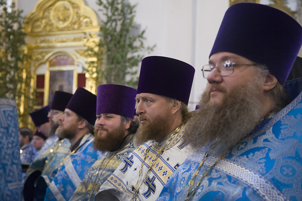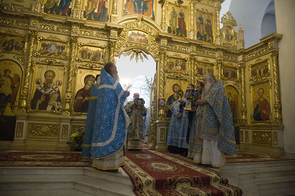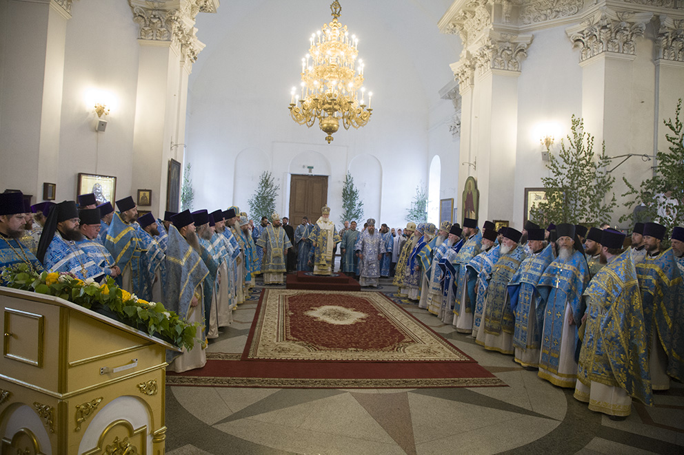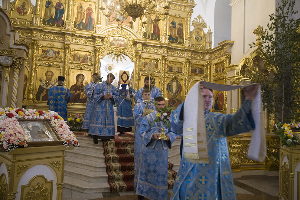 В праздничный день Божественную литургию в Спасо-Преображенском кафедральном соборе г. Рыбинска совершили митрополит Ярославский и Ростовский Вадим, митрополит Костромской и Нерехтский Ферапонт, архиепископ Салехардский и Ново-Уренгойский Николай, епископ Рыбинский и Романово-Борисоглебский Вениамин, епископ Галичский и Макарьевский Алексий, епископ Череповецкий и Белозерский Игнатий, епископ Костомукшский и Кемский Борис в сослужении духовенства Ярославской и Рыбинской епархий. За богослужением помогали воспитанники семинарии.