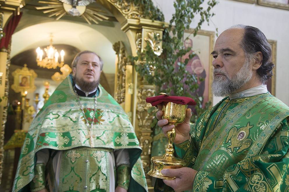 В следующий за Пятидесятницей день, то есть в понедельник совершается праздник в честь Святого Духа.