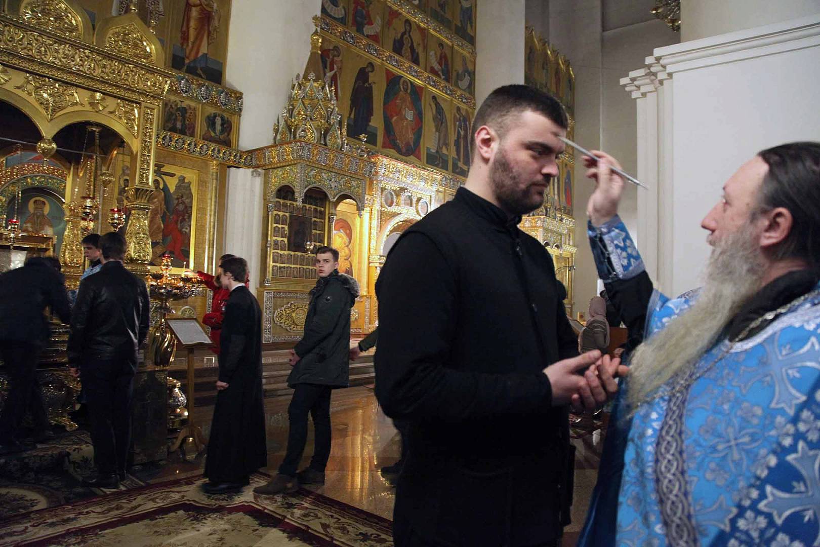 После акафиста студент 3 курса семинарии Игорь Баранов обратился ко всем молящимся в храме со словами проповеди: