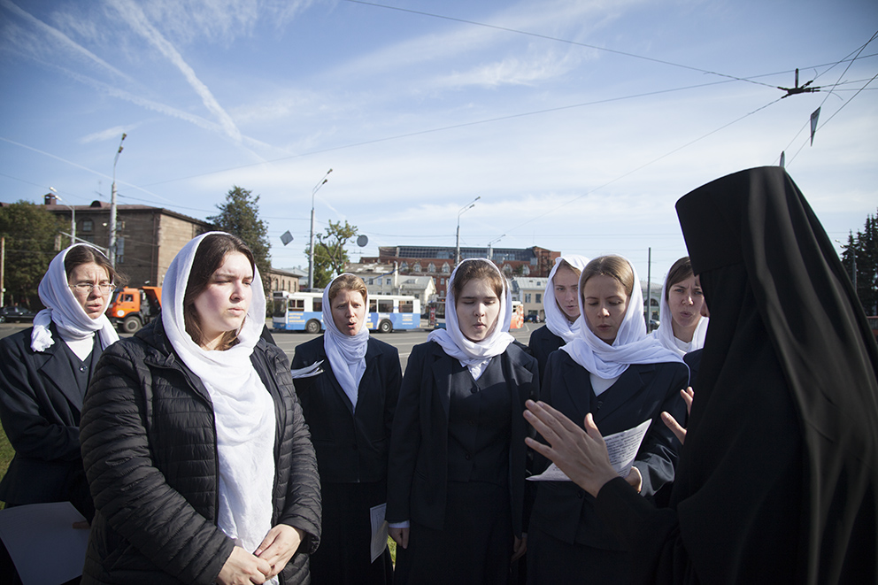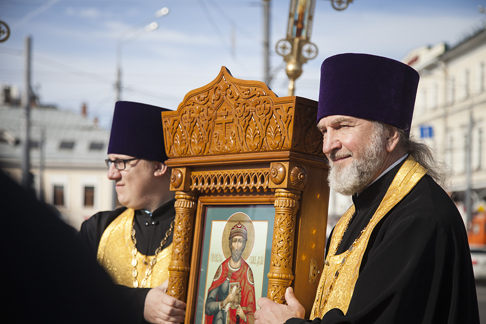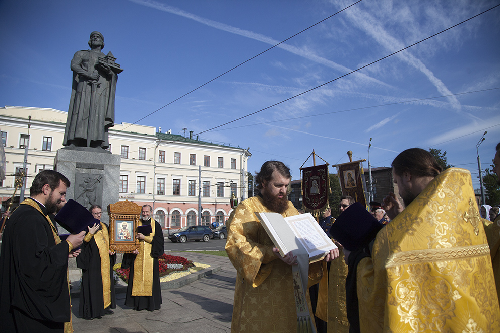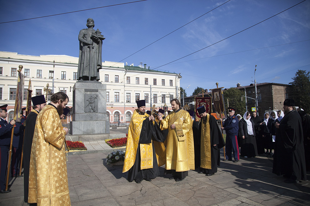 Перед молебном священнослужители, казаки и молящиеся прошли крестным ходом от Богоявленского храма к памятнику Ярославу Мудрому. В завершении молебна была прочитана молитва благоверному князю Ярославу Мудрому. За богослужением пел хор Регентской школы под управлением монахини Георгии (Кисловой).