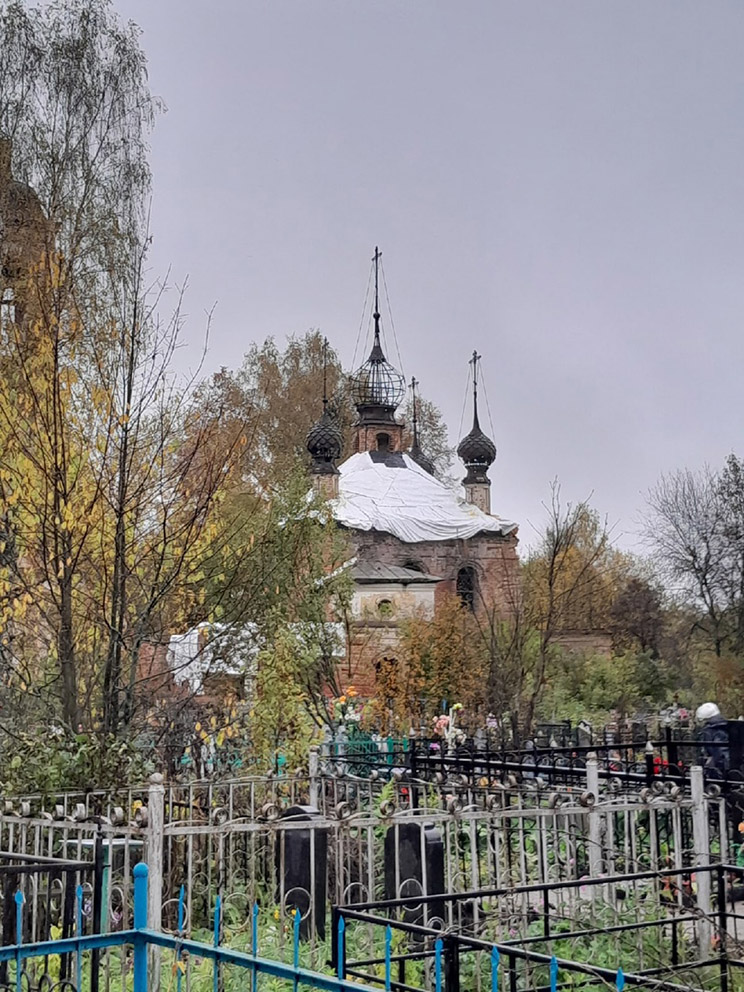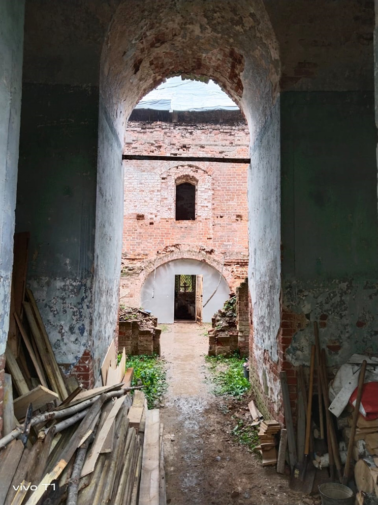 В настоящий момент в храме ведут работы по восстановлению свода алтаря.