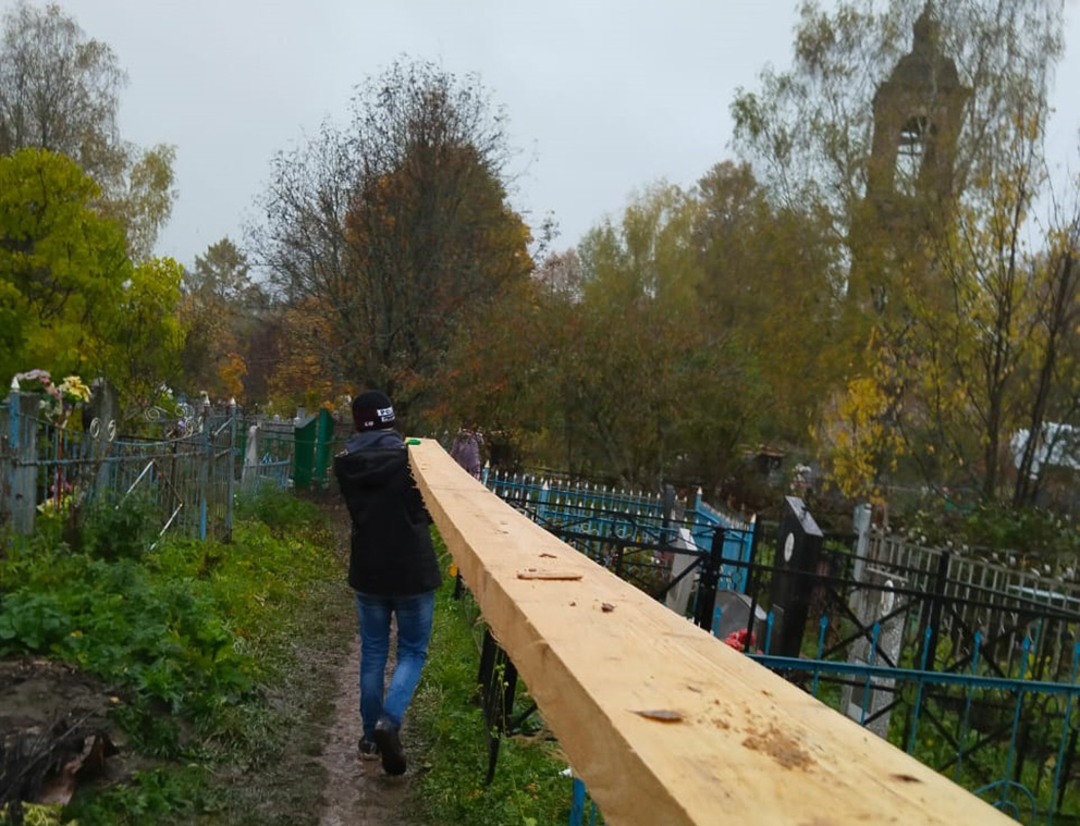 В очередном субботнике, который проходил на территории полуразрушенного Крестовоздвиженского храма д. Сидорково (Селифонтово), приняли участие воспитанники Ярославской духовной семинарии.