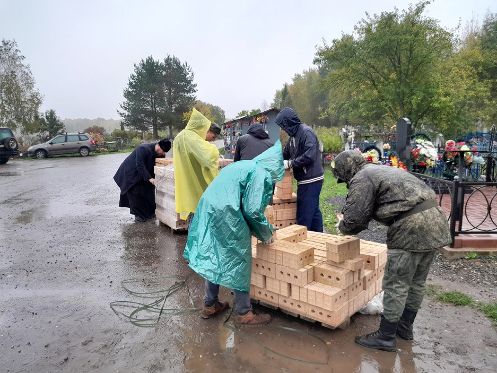 Семинаристы помогли перенести заготовленные строительные материалы, участвовали в расчистке площадки за алтарем от деревьев.