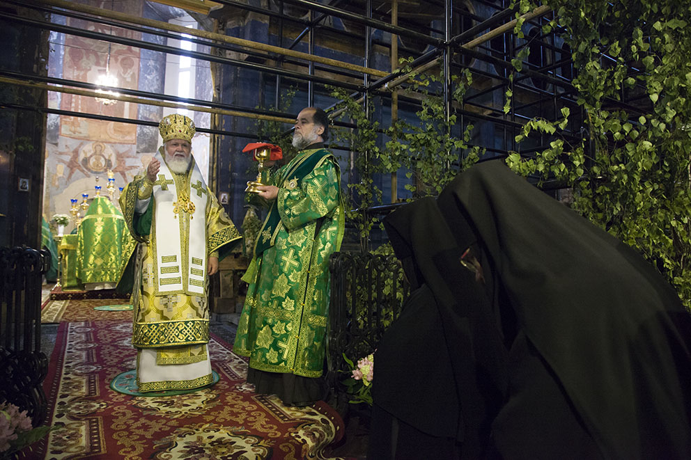 За богослужением молились настоятельница Свято-Введенского Толгского женского монастыря игумения Варвара (Третьяк) с сестрами обители, настоятельница женского монастыря Рождества Пресвятой Богородицы г. Ростова Великого игумения Афанасия (Силкина) с сестрами обители и настоятельница Аврамиевого Богоявленского женского монастыря г. Ростова Великого игумения Авраамия (Сорокина) с сестрами обители.