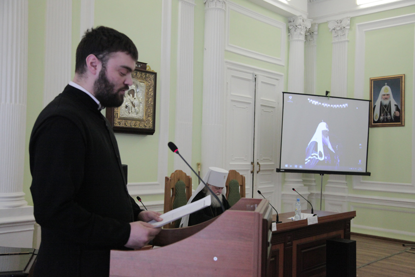 Затем о многогранном служении Святейшего Патриарха на посту председателя Отдела внешних церковных связей рассказал проректор семинарии по научной работе игумен Николай (Шишкин). Отец Николай обратил внимание на тот факт, что в это время создавались многие церковные проекты, которые впоследствии, уже в годы предстоятельства Патриарха Кирилла, стали развиваться во всей полноте или способствовали развитию многих новых проектов. Докладчик сказал о значении Всемирного Русского Народного Собора и о Социальной концепции Русской Православной Церкви. Особое внимание докладчик уделил развитию церковной дипломатии, которая в современных условиях играет большое значение не только на уровне внешних церковных взаимоотношений, но и на уровне внутренней миссии.