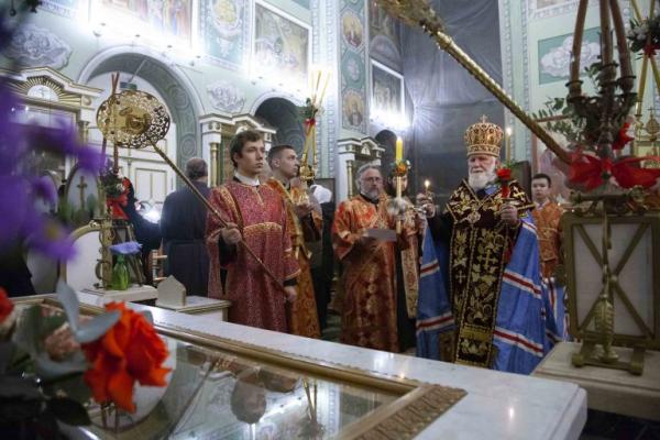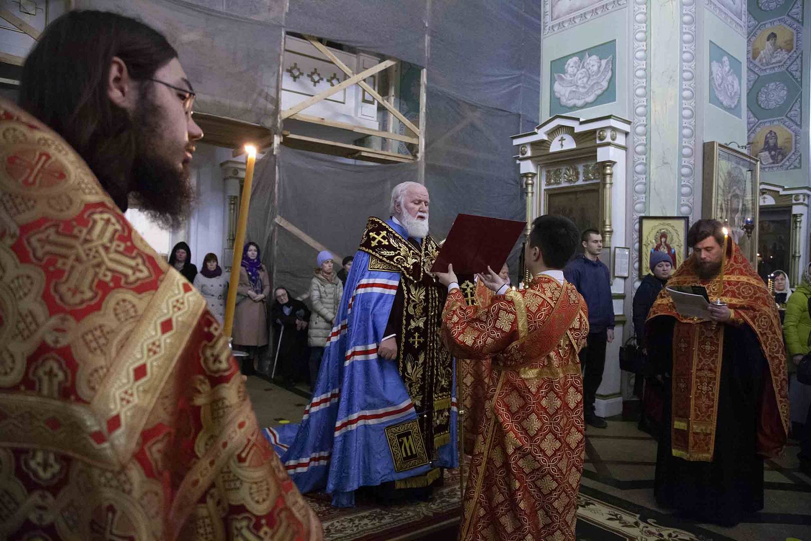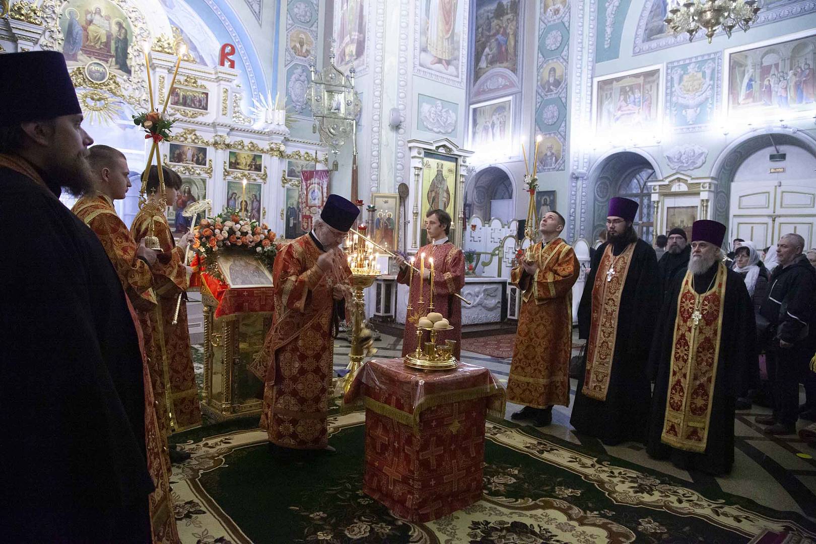 Накануне праздничного дня, 11 ноября 2023 года, в Казанской обители митрополит Ярославский и Ростовский Вадим в сослужении клириков монастыря и Успенского собора Ярославля совершил Всенощное бдение с пением акафиста святителю Агафангелу.