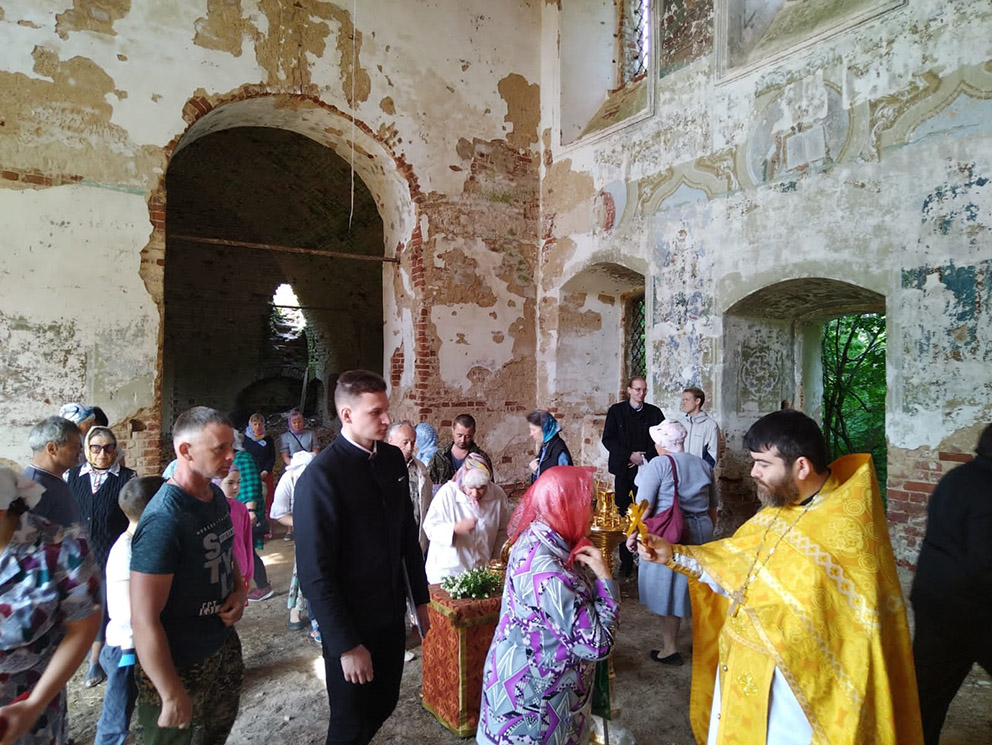 17 июня настоятель Спасского храма с. Васильевского иерей Иоанн Лозан и клирик Успенского собора г. Ярославля, проректор по воспитательной работе семинарии иерей Димитрий Пчелкин совершили в Сретенском храме Божественную литургию, первую с момента закрытия храма в 1960 году.