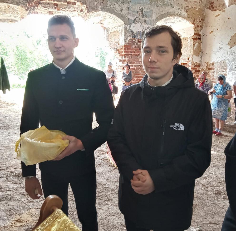 Традиционно богослужения в полуразрушенных храмах становятся миссионерскими. Студенты не только общаются с местными жителями во время подготовки храма к службе, но и говорят проповеди во время самого богослужения. Сегодня проповедь о святом дня после 6-го часа сказал студент 3-го курса Дмитрий Жуков. После чтения Евангелия проповедь в теме евангельского чтения сказал студент 3-го курса Дмитрий Пинтелин . На запричастном проповедь об апостольском чтении сказал студент 3-го курса Живаев Никита.