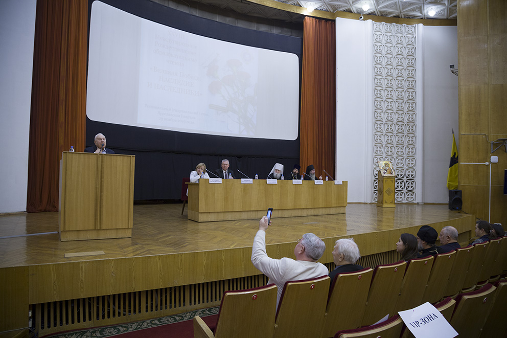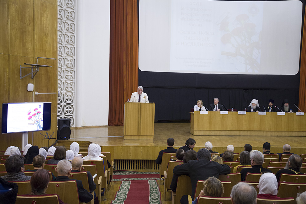 На Пленарном заседании выступили: первый заместитель директора Департамента образования Ярославской области С. В. Астафьева, участник Великой Отечественной войны Н. И. Бритвин; участник Великой Отечественной войны М. Н. Пеймер; заместитель председателя Ярославской областной организации «Российский Союз ветеранов» В. К. Муратов; доктор церковной истории, кандидат исторических наук, профессор, заместитель заведующего Отделом новейшей истории Русской Православной Церкви Православного Свято-Тихоновского гуманитарного университета иерей Александр Мазырин.