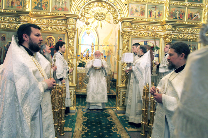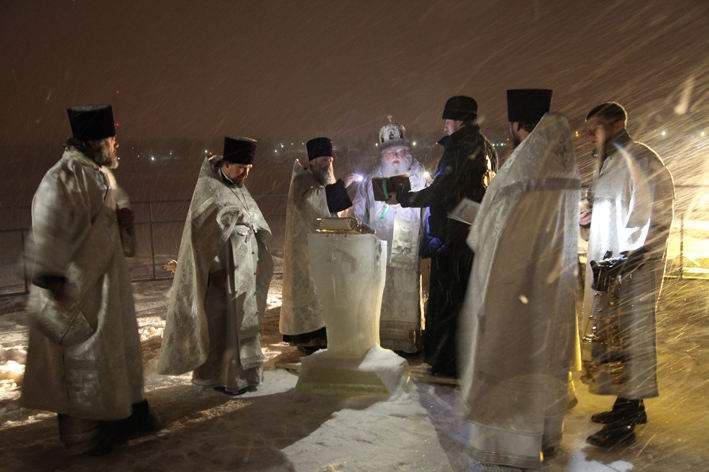 Владыка совершил Божественную литургию ночью 19 января в Крестовоздвиженском храме Свято-Введенского Толгского женского монастыря. После службы владыка, священнослужители, сестры обители и паломники прошли крестным ходом от храма к реке Волге, где владыкой был совершен чин великого освящения вод. Во время Божественной литургии и последующих на ней крестного хода и великого освящения воспитанники семинарии несли иподиаконское послушание, помогая в богослужении.