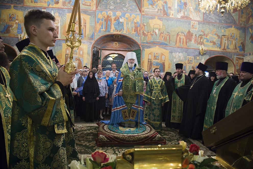 21 июля ковчег встретили в Казанском женском монастыре. После Божественной литургии, которую в Казанском соборе монастыря совершил митрополит Ярославский и Ростовский Вадим, все желающие могли приложиться к мощам. После службы святыня крестным ходом была пронесена по улицам Ярославля до речного вокзала, а затем пароходом доставлена в Свято-Введенский Толгский женский монастырь. Ковчег с мощами, сопровождающих его священников и прихожан храмов, провожавших мощи из Казанского монастыря, в Толгской обители встретили митрополит Ярославский и Ростовский Вадим, настоятельница монастыря игумения Варвара с сестрами и паломники.