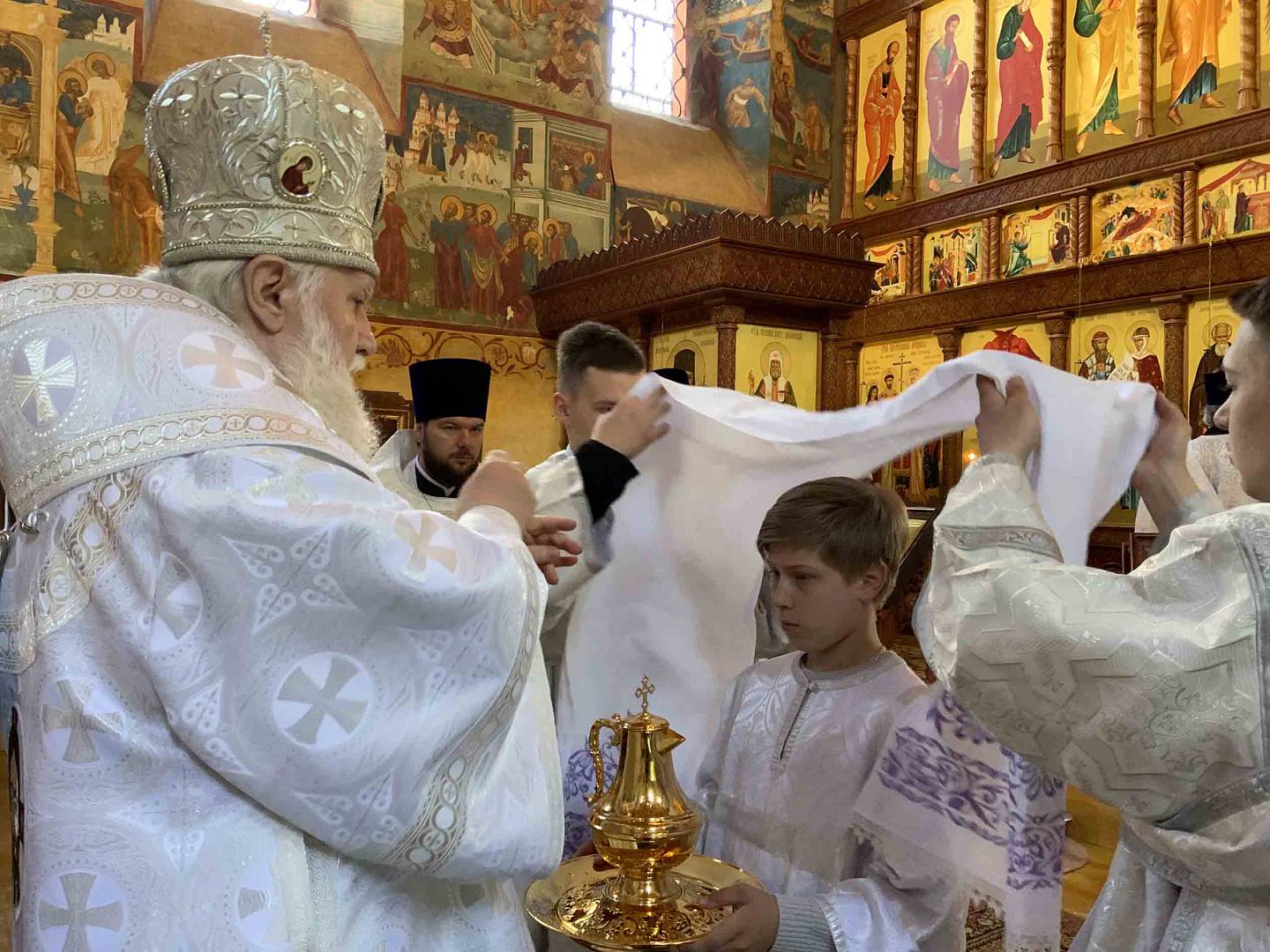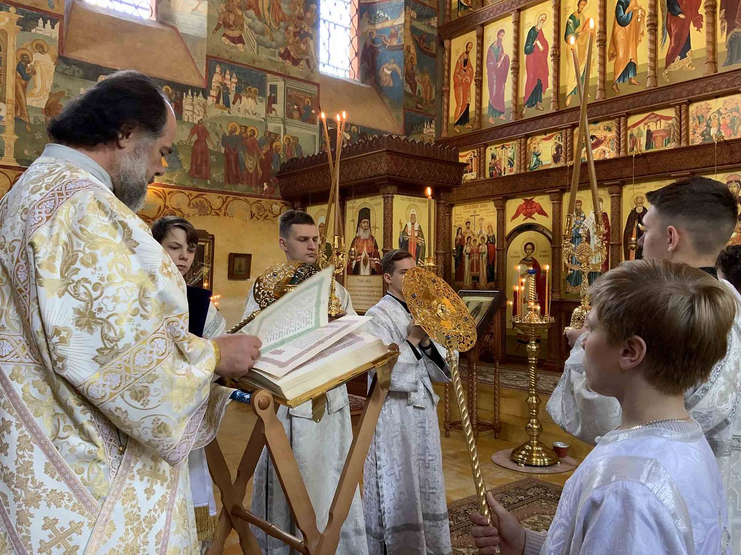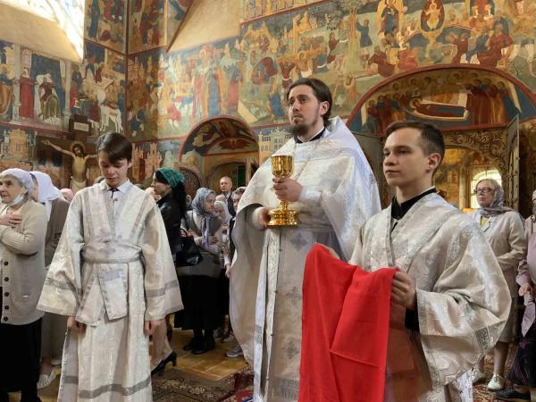 Божественную литургию в Благовещенском храме прихода совершил митрополит Ярославский и Ростовский Вадим в сослужении секретаря епархии иерея Александра Пчелкина, настоятеля прихода иеромонаха Агафангела (Шкуранкова), настоятеля Крестовоздвиженского храма и храма Ярослава Мудрого г. Ярославля иерея Алексия Карпова, клириков Успенского собора иерея Дионисия Цыбуляка и иерея Димитрия Пчелкина и клириков храмов Ярославля. За богослужением помогали воспитанники семинарии.