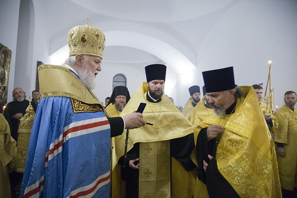 За богослужением владыка митрополит удостоил медали Ярославских чудотворцев (3 степени) настоятеля Благовещенского храма с. Аббакумцево протоиерея Георгия Белянина в связи с 30-летием служения в священном сане.