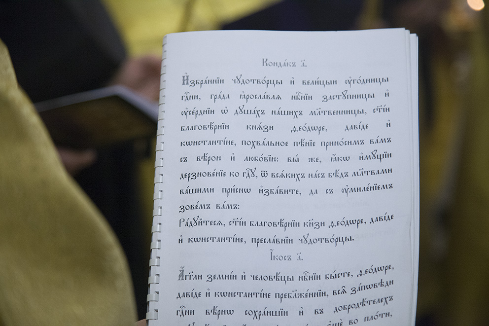 2 октября 2022 года Церковь празднует память Ярославских чудотворцев – благоверных князей Феодора, Давида и Константина. Накануне праздничного дня в Успенском кафедральном соборе г. Ярославля, где находятся мощи благоверных князей, было отслужено Всенощное бдение с акафистным пением перед мощами святых. Богослужение совершил митрополит Ярославский и Ростовский Вадим в сослужении клириков храмов г. Ярославля. За богослужением помогали воспитанники семинарии.